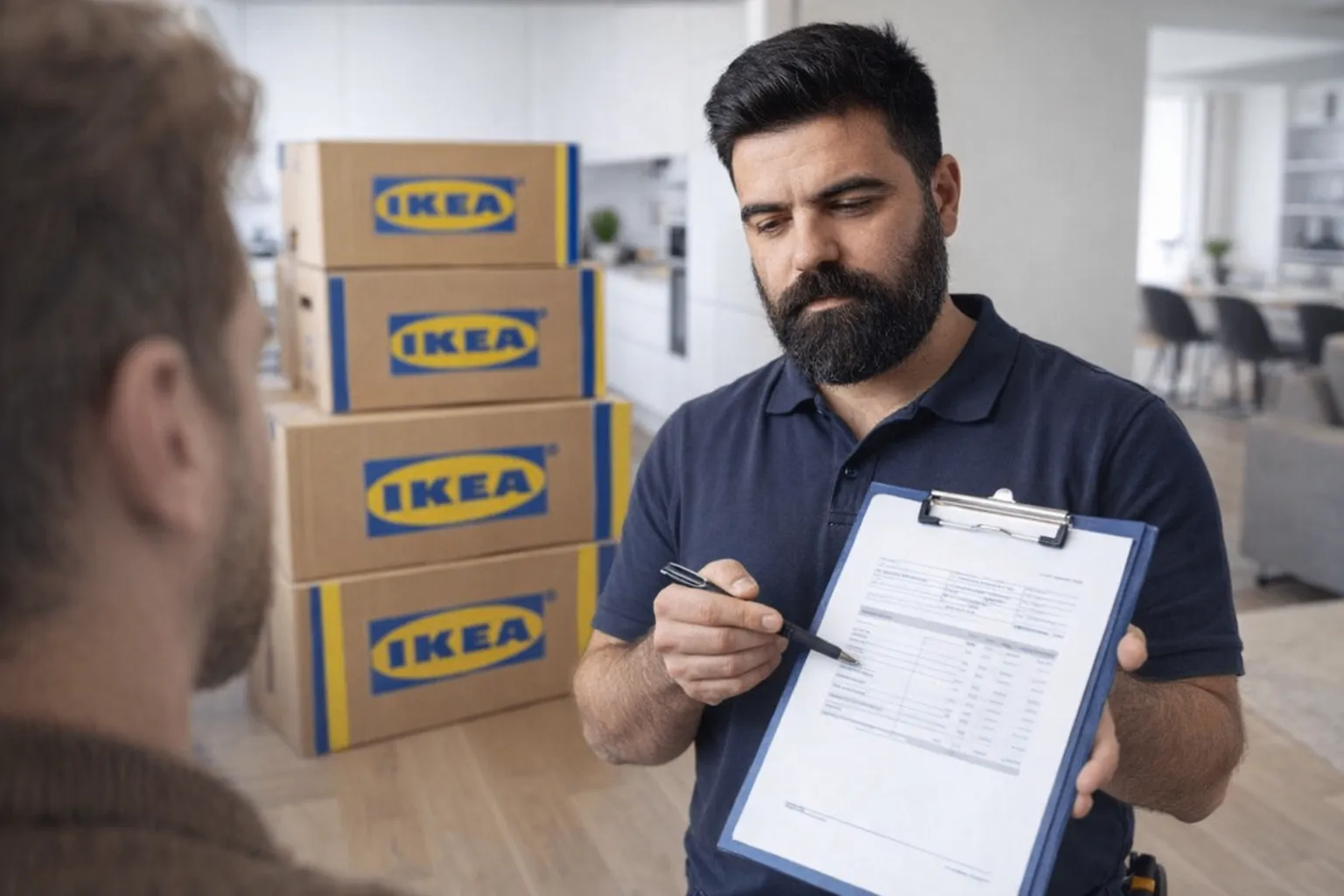 - Wysylacie zdjecie kartonow lub nazwe modelu IKEA — fachowiec ocenia zakres pracy i podaje cene.