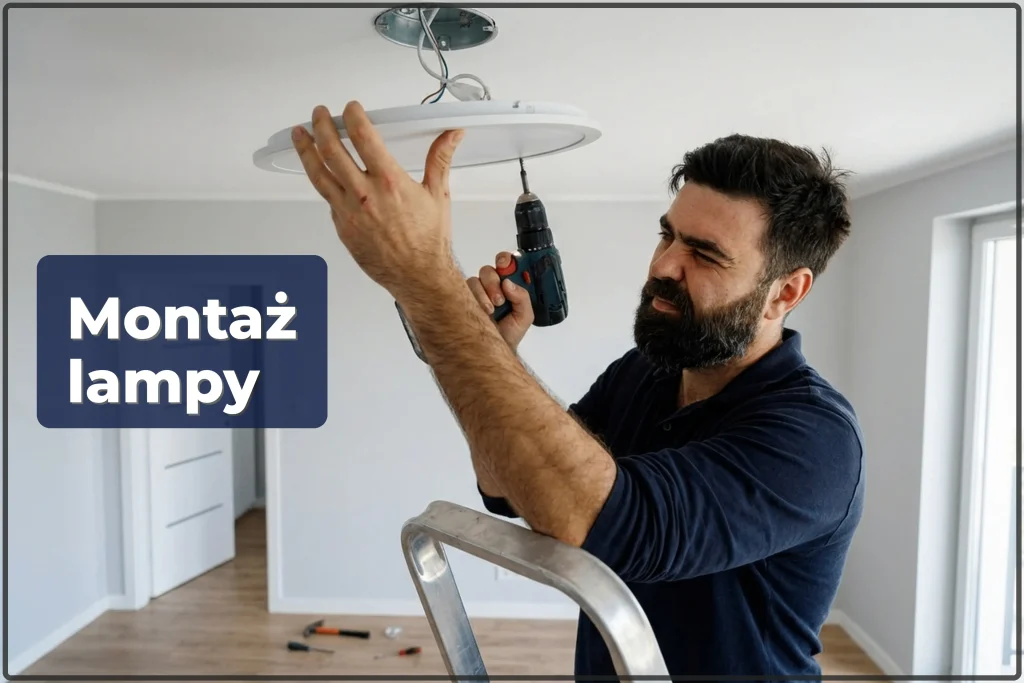 Uwaga: montaż oświetlenia to praca na wysokości z prądem. Spadnięcie lampy lub nieprawidłowe podłączenie są niebezpieczne. Nie ryzykuj — wezwij fachowca.