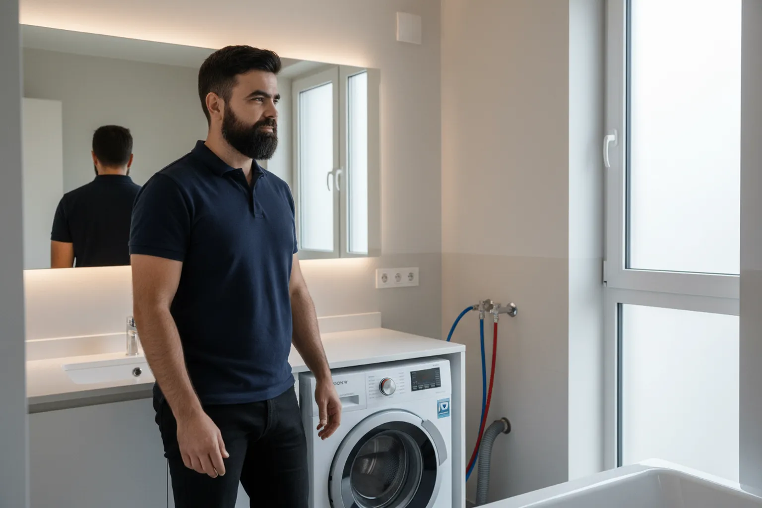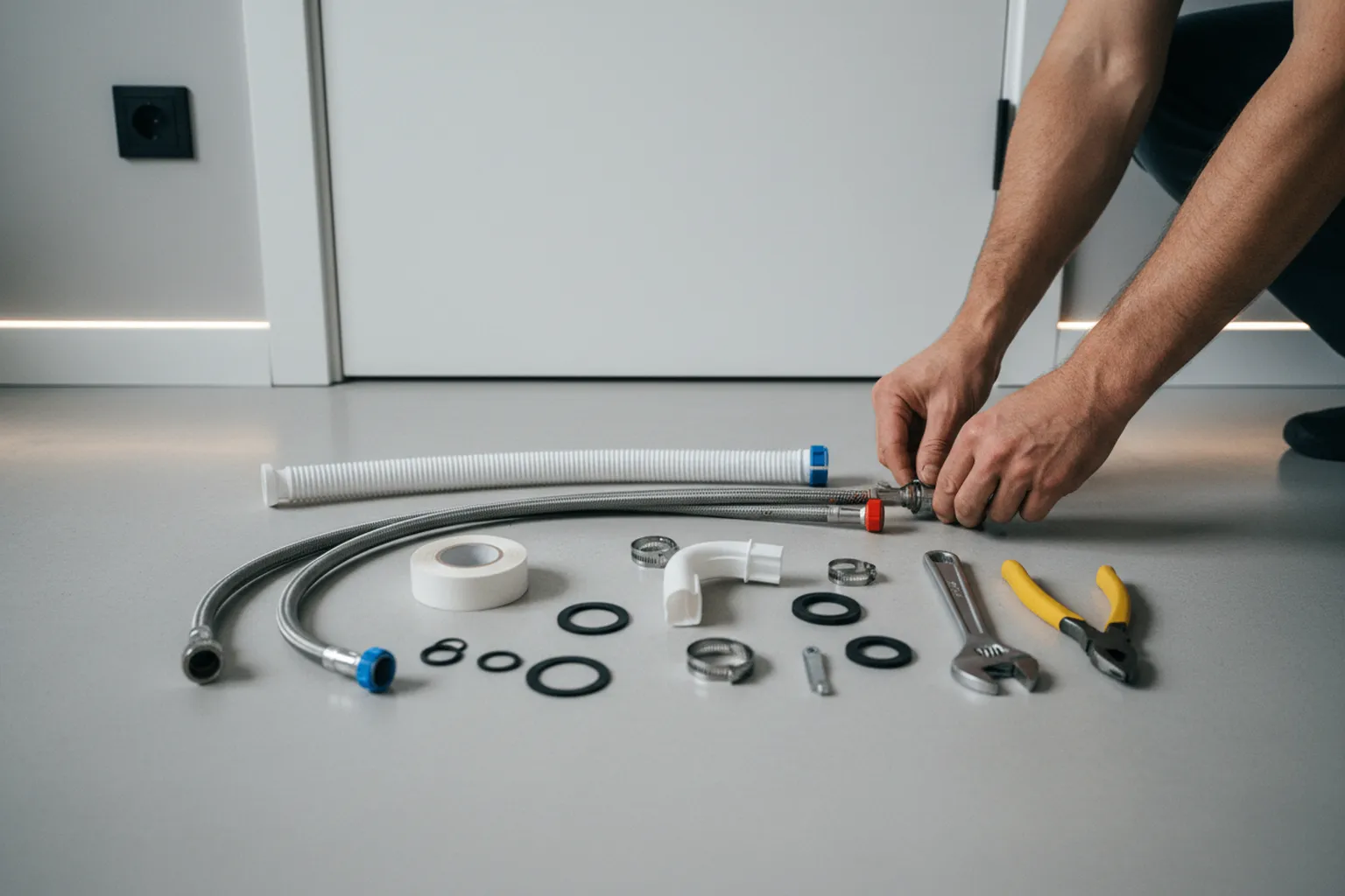 - Zwolnij miejsce w łazience, pomieszczeniu gospodarczym lub kuchni — fachowiec potrzebuje dostępu do ściany, rur i syfonu.