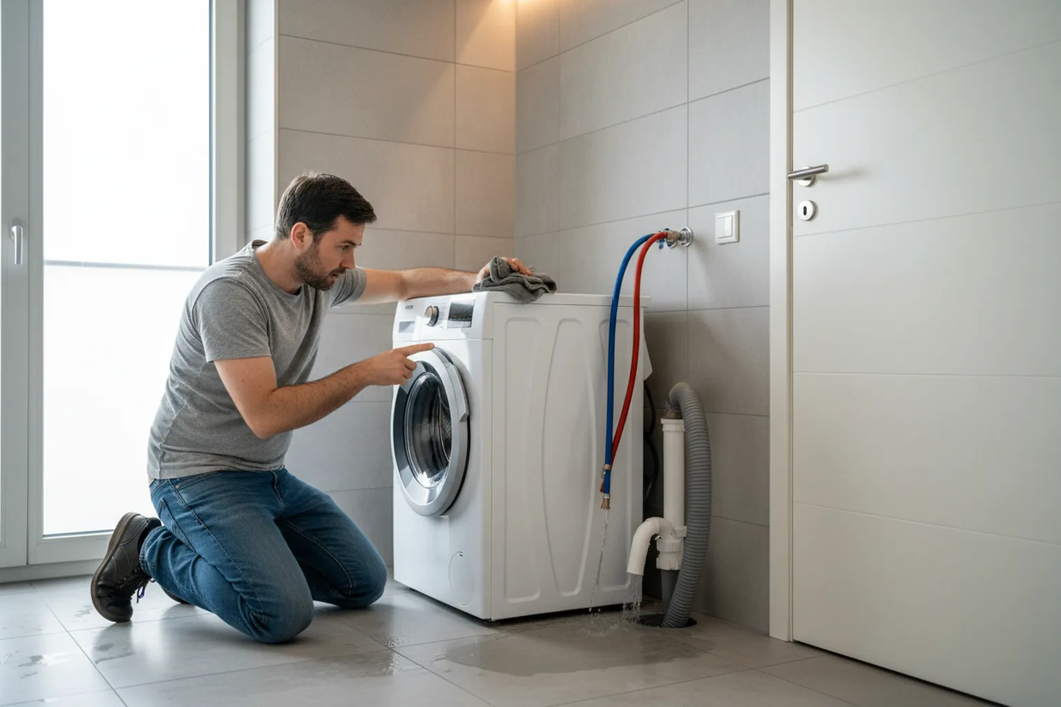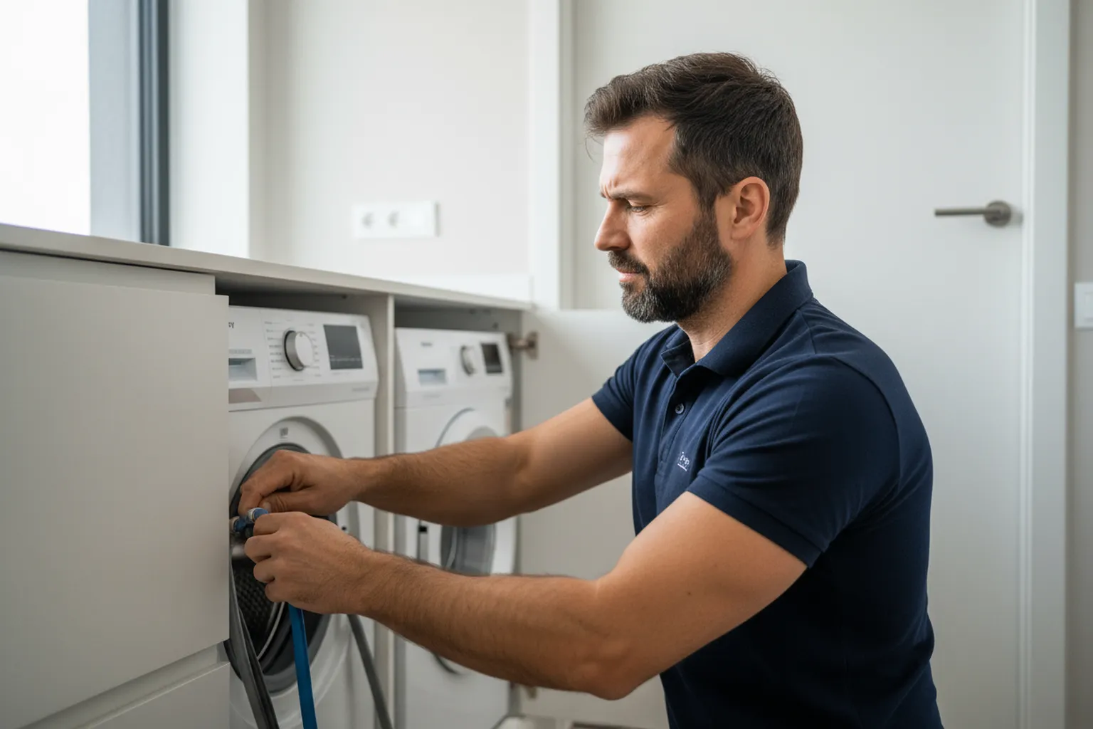 - Sprawdź gniazdko: musi być z uziemieniem, umieszczone nie za pralką, a z boku lub wyżej.