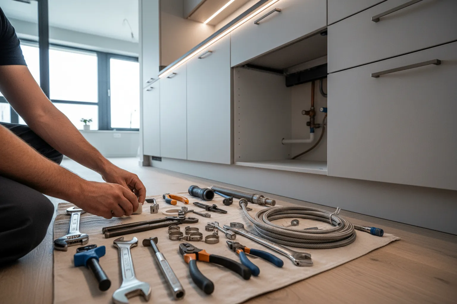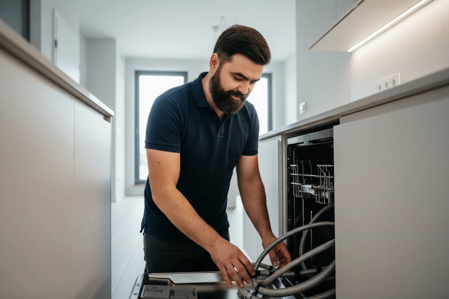 - Zmierz odległość od zmywarki do punktów podłączenia — fachowiec oceni, czy fabryczne węże będą wystarczające.