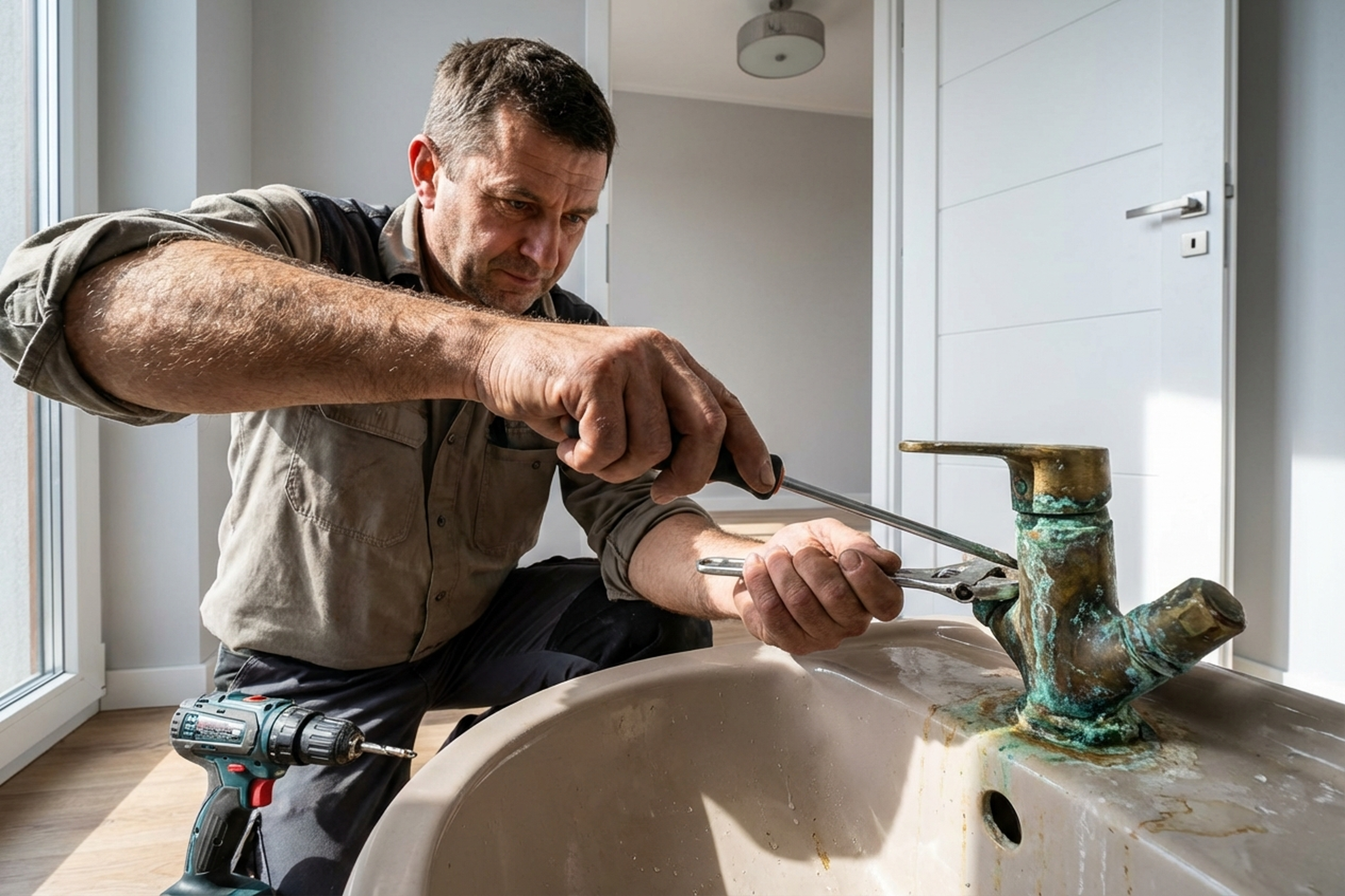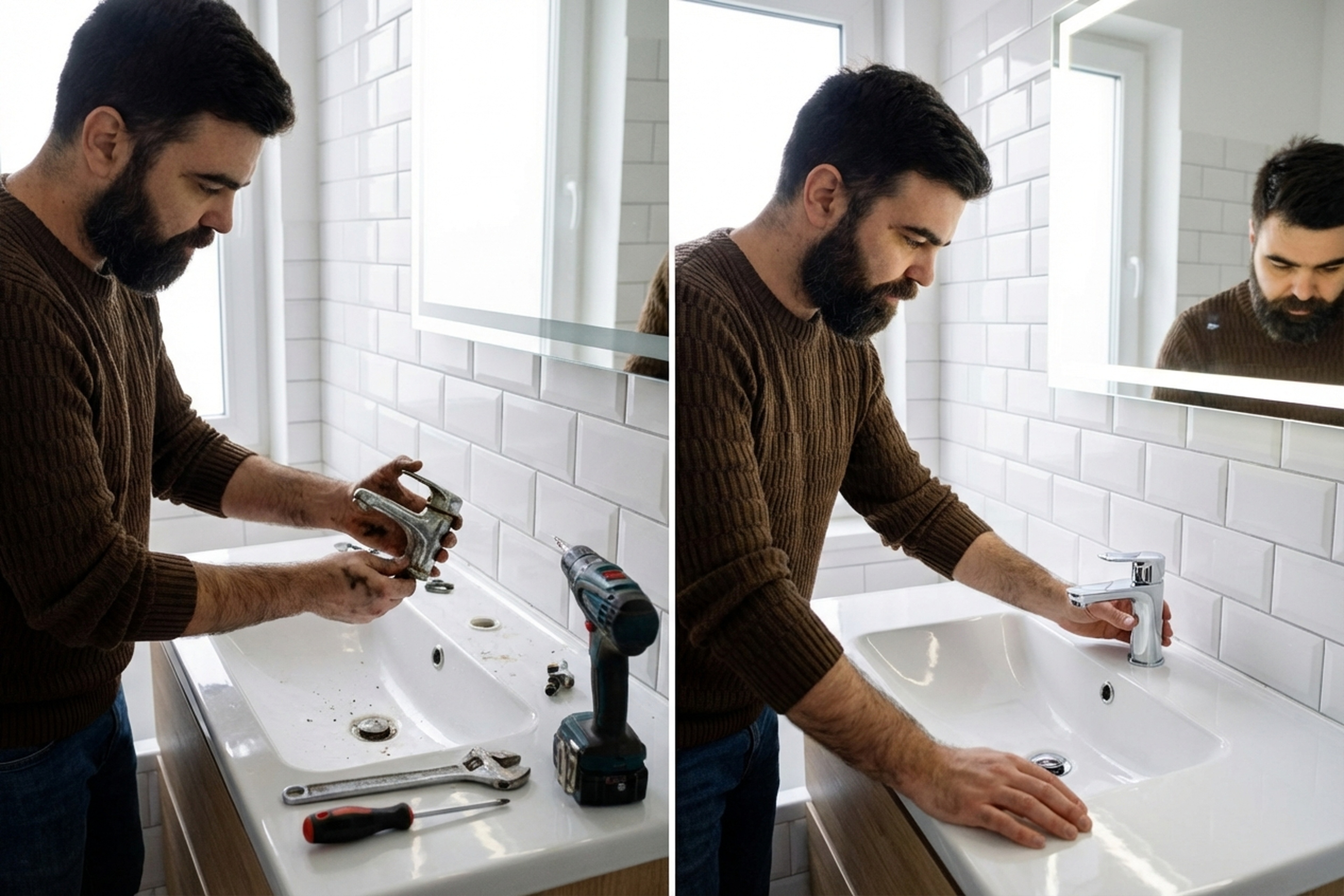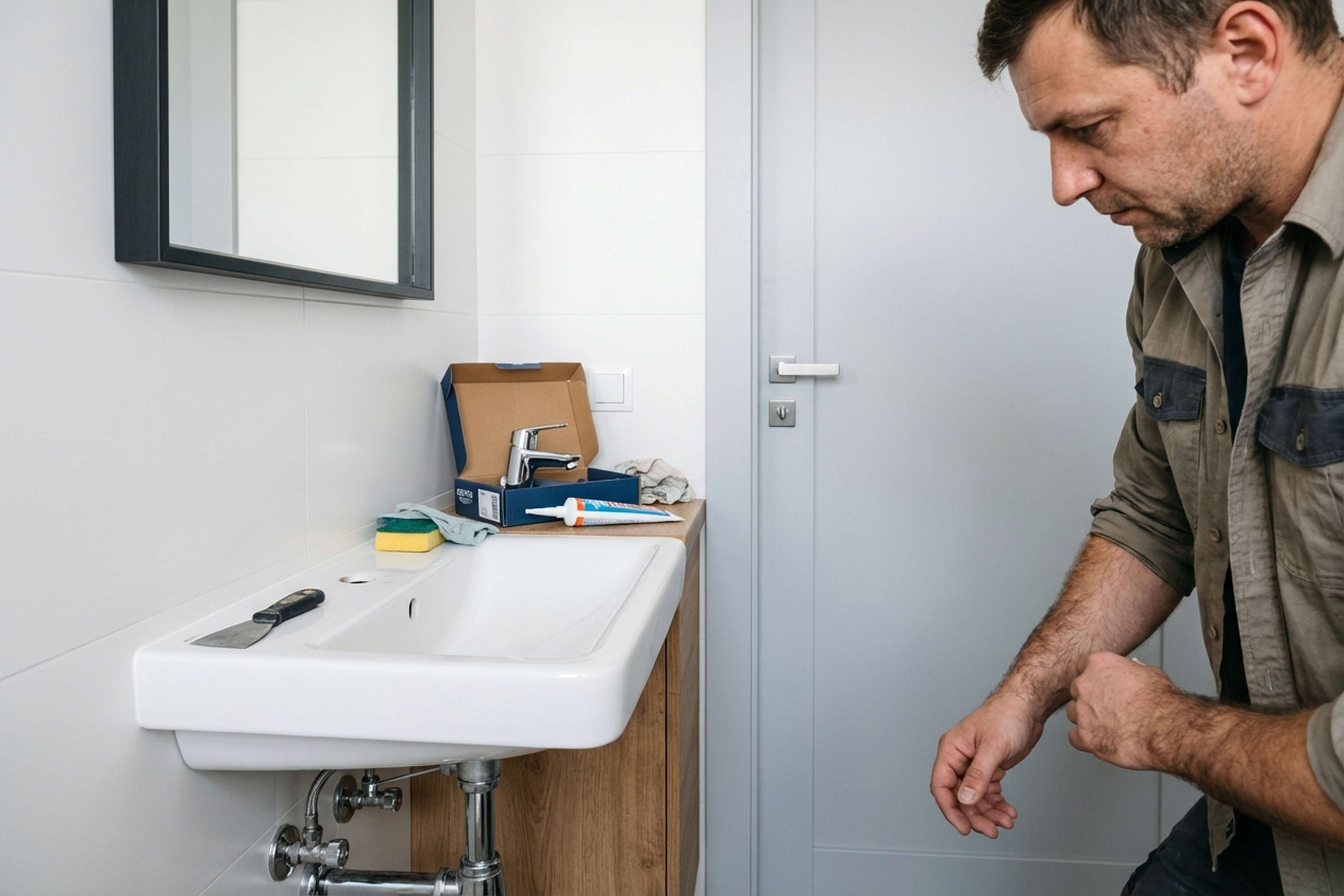 22.02.2026The basin tap is dripping, the lever is stiff, or the whole thing looks like it survived three renovations — a familiar story. In flats across Mokotow and Praga-Poludnie this is one of the most common callouts: a leaking mixer, a wobbly base, and a puddle forming under the sink. Replacing the entire tap is simpler and more reliable than trying to patch the old one. The job takes an hour to ninety minutes if the supply lines are sound and the new tap is ready.