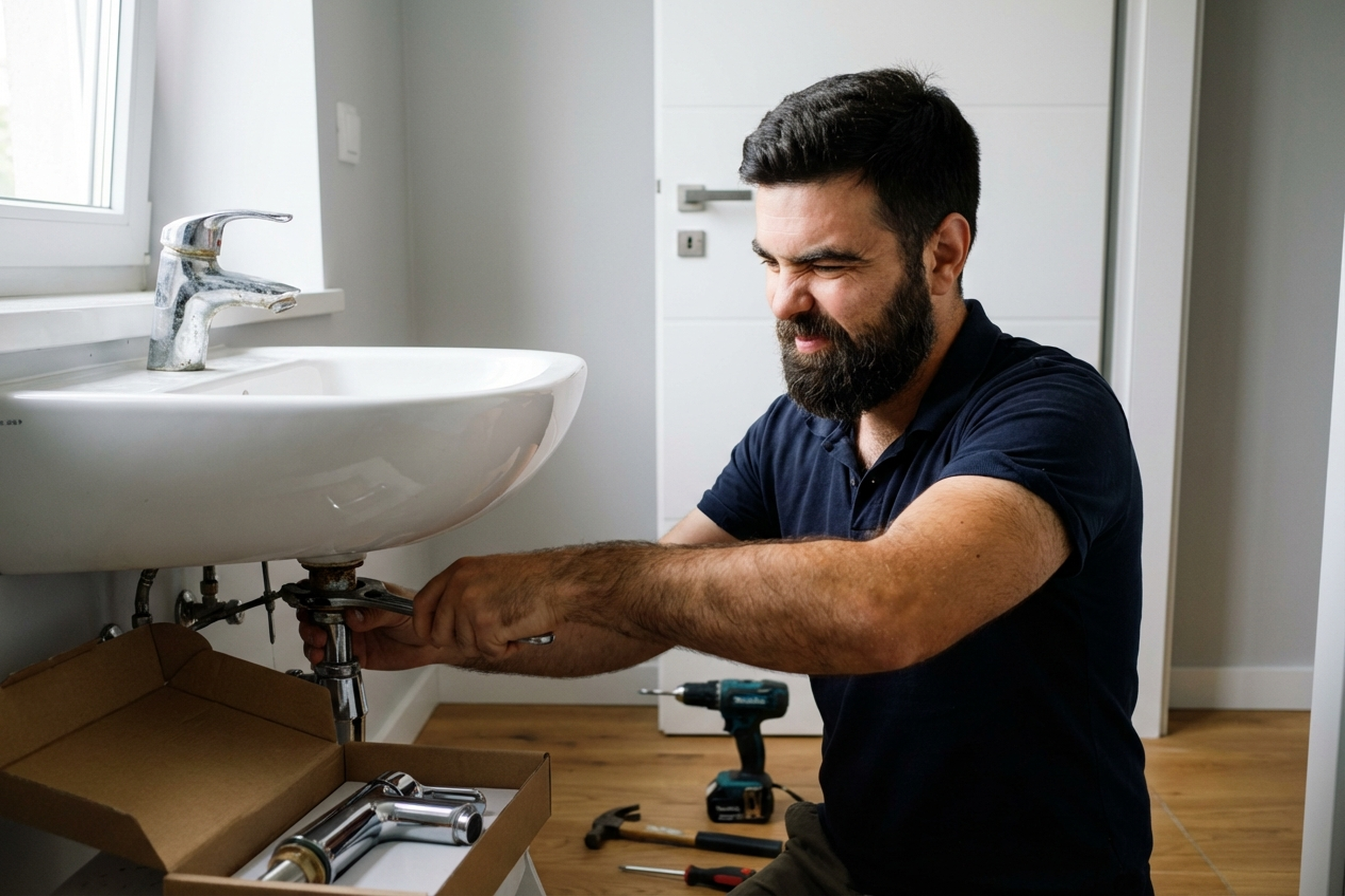We were called to a flat in Mokotow. The owner had bought a new single-lever Grohe mixer to replace an old twin-handle tap that had been dripping from beneath the handles for six months. Under the basin was a vanity unit with very tight access, and the supply lines were rigid copper — original from the 1990s. We shut the water off, cut the old copper pipes, fitted angle valves and new stainless-steel braided hoses. The new mixer went in, we tested it — not a single drip. While we were at it, we replaced the waste trap because the old plastic had already cracked. The entire job took just over an hour. The owner had been living with a towel under the sink for half a year, and it was all sorted in one visit.