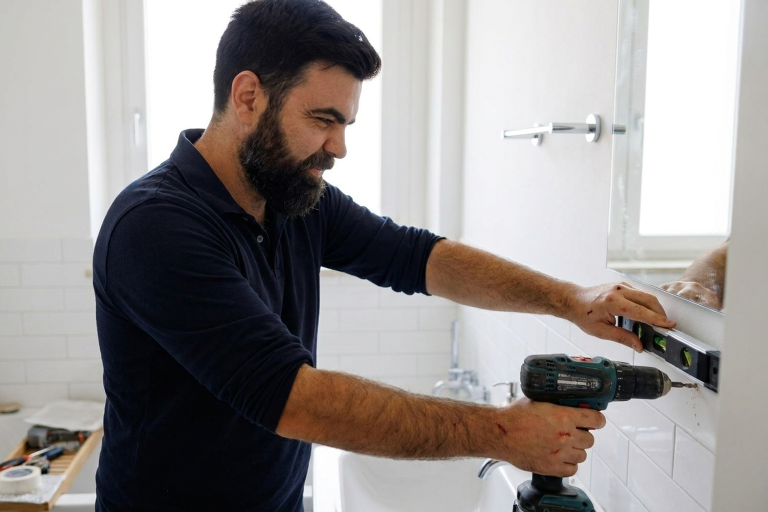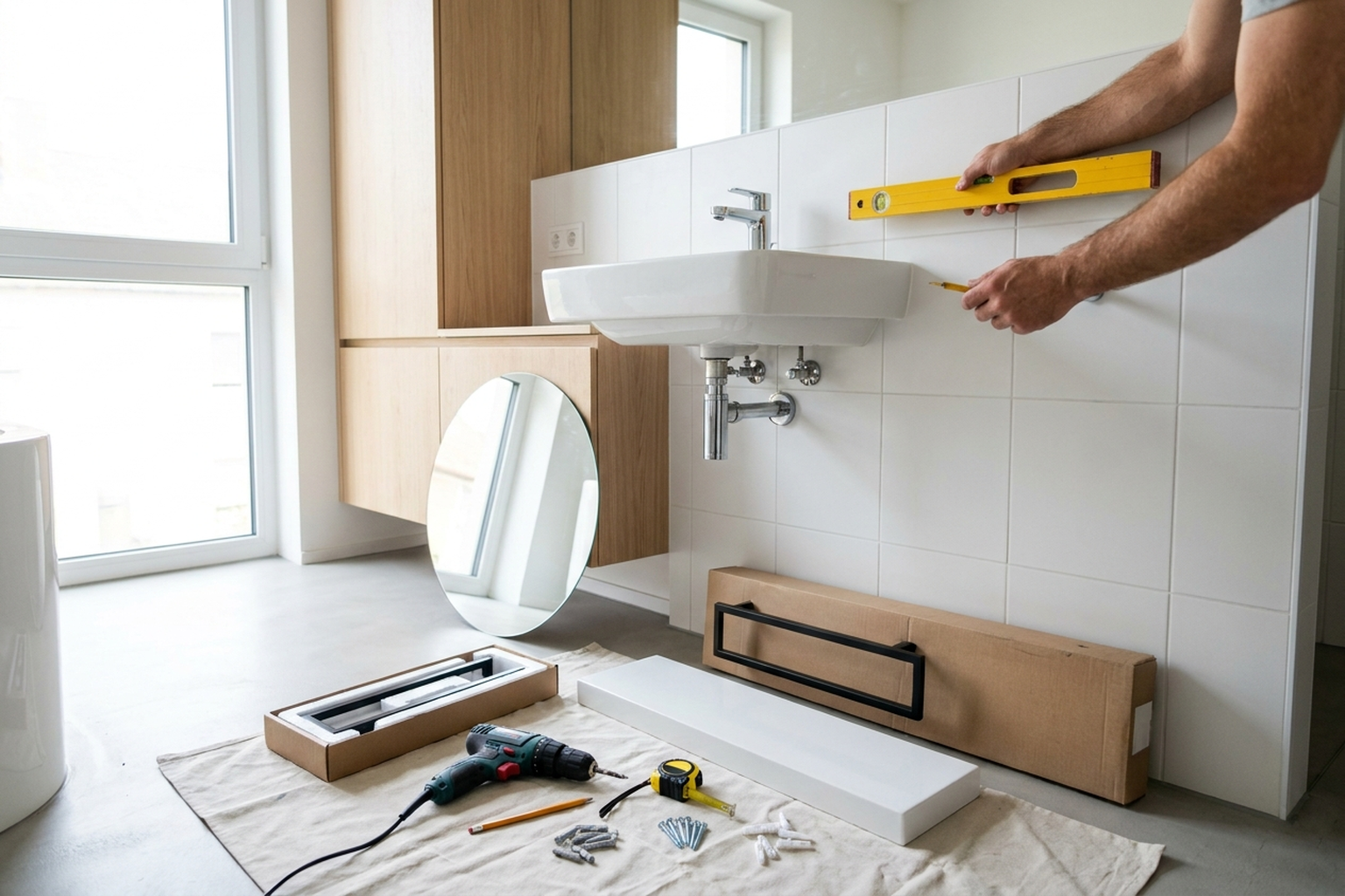 The tiles are finished, the plumbing is in place — now comes the final stage that makes a bathroom properly functional. Sink, mirror, towel rail, soap dispenser, shower mixer — every item has to be straight, connected without drips, and fixed solidly to whatever wall is there. Below is a hands-on guide to bathroom fitting in Warsaw: what should go in first, which mistakes to avoid, and how HandyMan24 approaches the job.