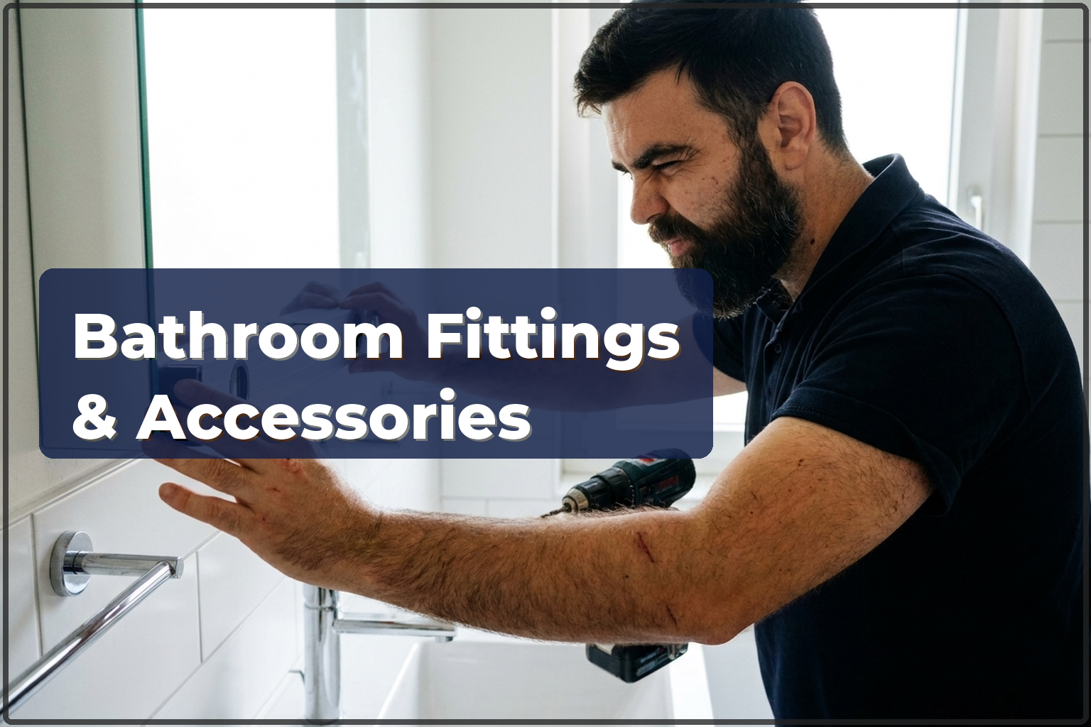 - 5. Accessories last. Towel rings, soap holders, toilet paper holders, hooks — these go on after the rest so they do not get bumped during the heavier installation work.
