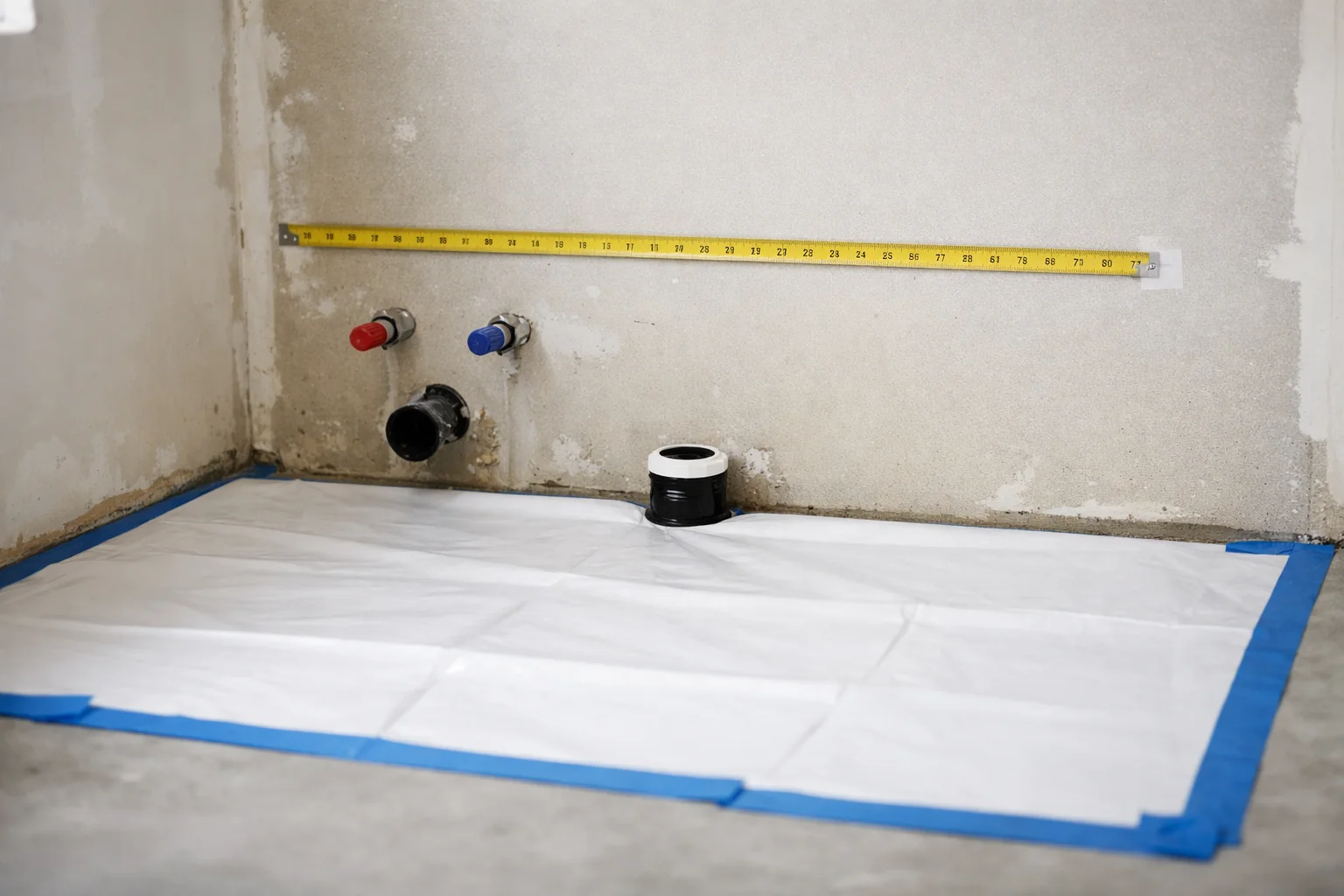 - Preparing the base: the floor must be level and solid. If the screed is damaged or uneven, we level it. For a cast-iron bath we sometimes reinforce the subfloor so the structure can take the weight.