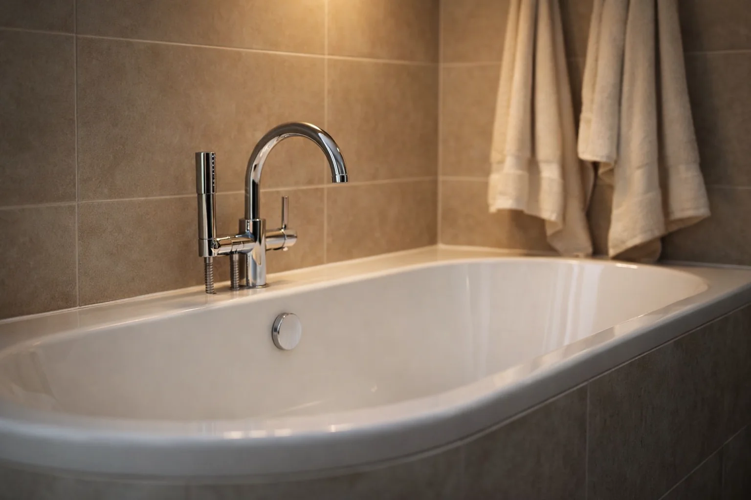 - Final check: we fill the bath completely and inspect all connections under load. We drain the water and check the flow rate and that the floor around is dry. Only then is the job signed off.