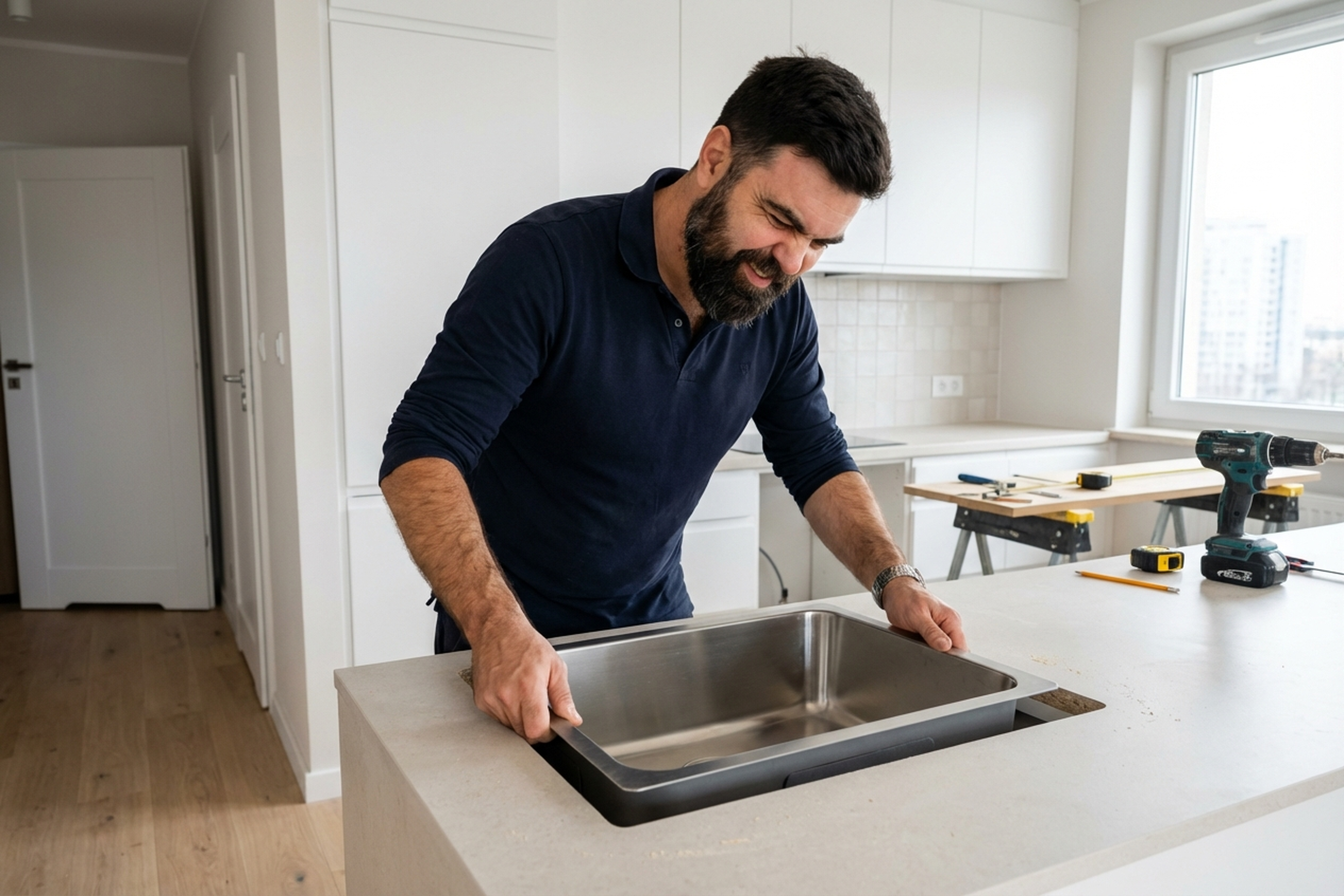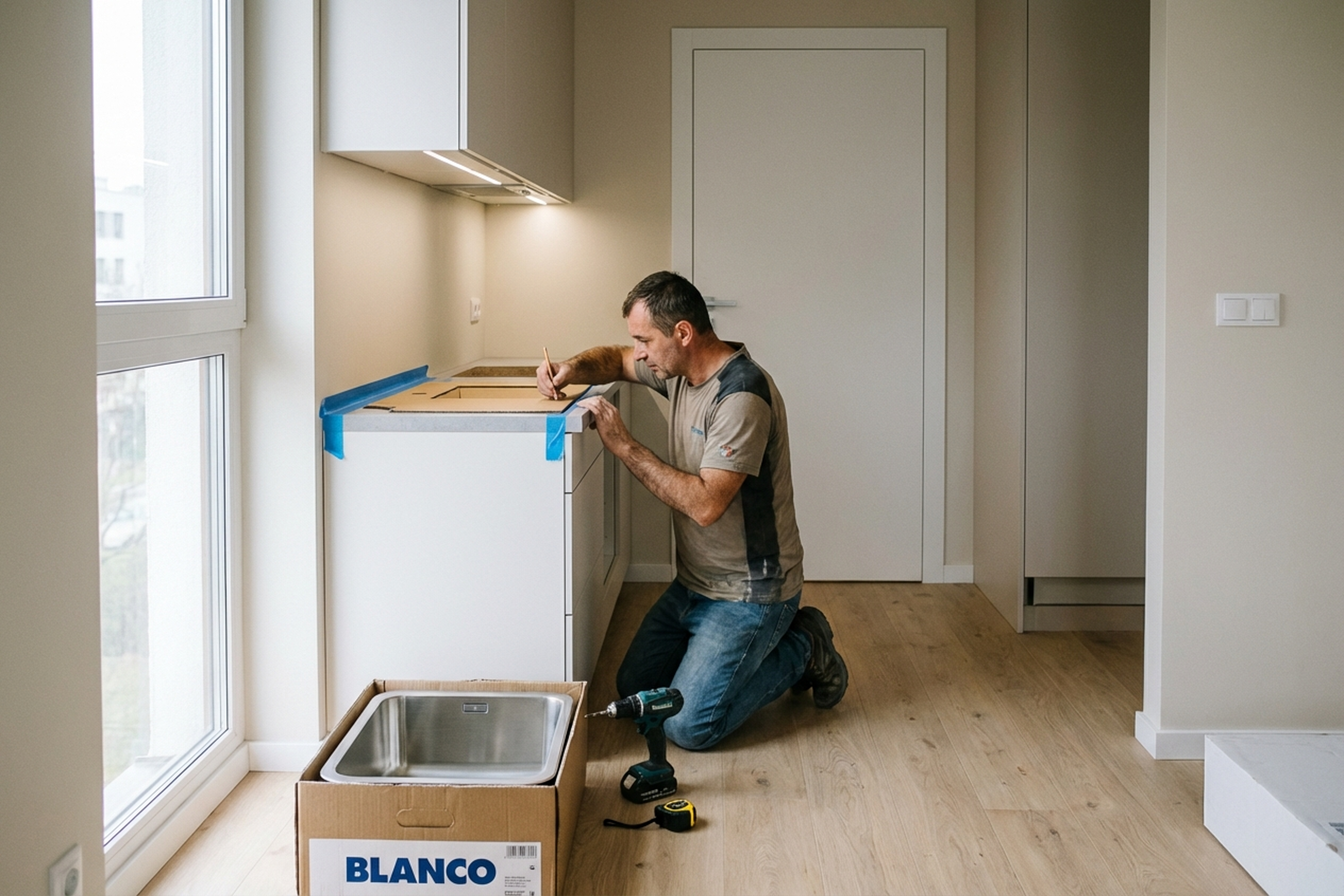 A client in the Mokotów district ordered a cutout for a Blanco drop-in sink in a 38 mm laminated chipboard worktop. The problem: the sink template turned out to be 5 mm wider than the actual dimensions — probably a printing error in the manual. The technician verified against the sink itself, marked the contour by hand with a 2 mm allowance. The cut was made with a jigsaw and a laminate-specific blade — clean edge, no chipping. The edges were sealed with silicone, and the sink was fitted. The whole job took about 40 minutes. The client later said that if he had cut to the template, the sink would have fallen through. Takeaway: always verify the template against the actual appliance dimensions.