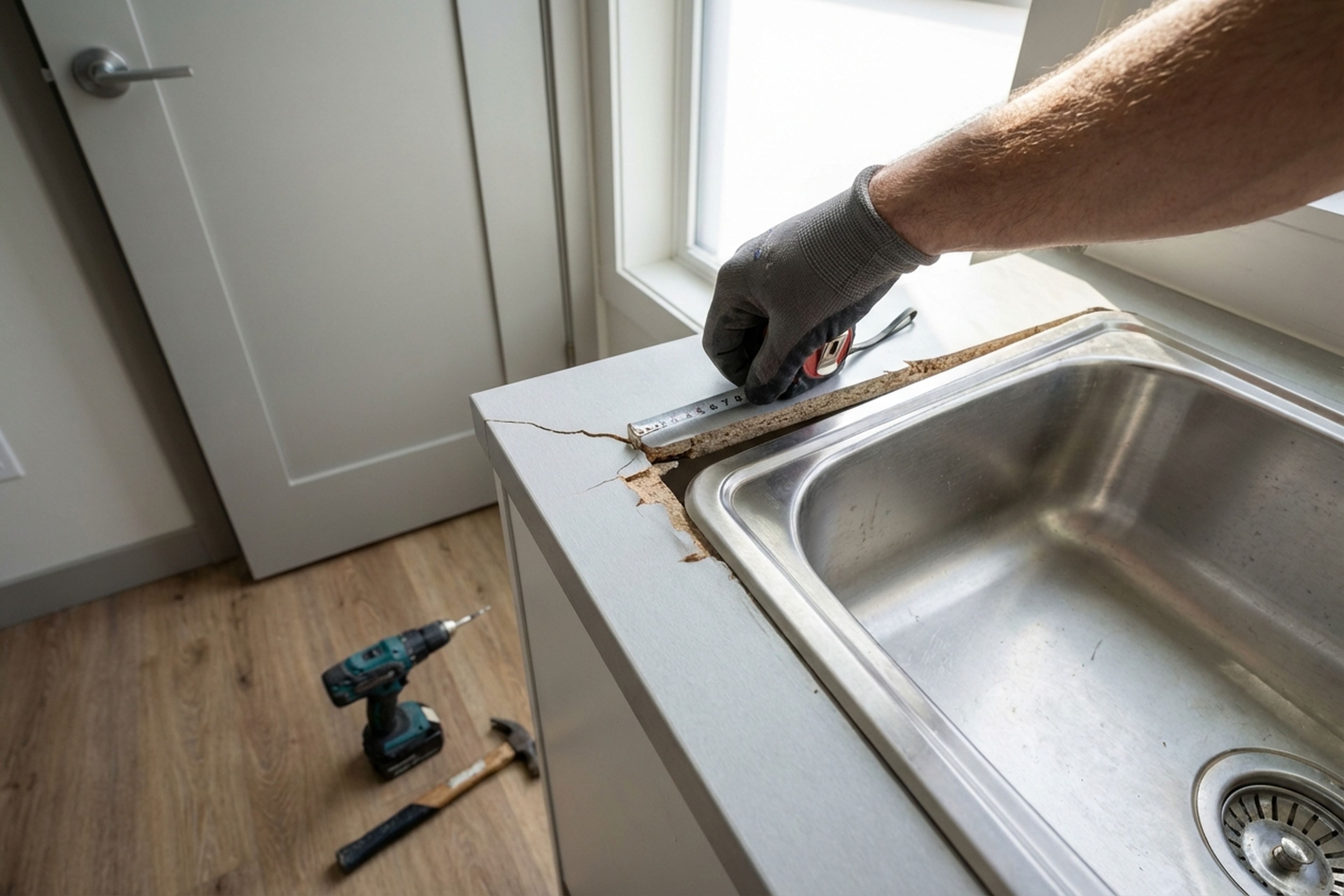 - You send a photo of the countertop and the sink or hob model — the technician assesses the scope.
