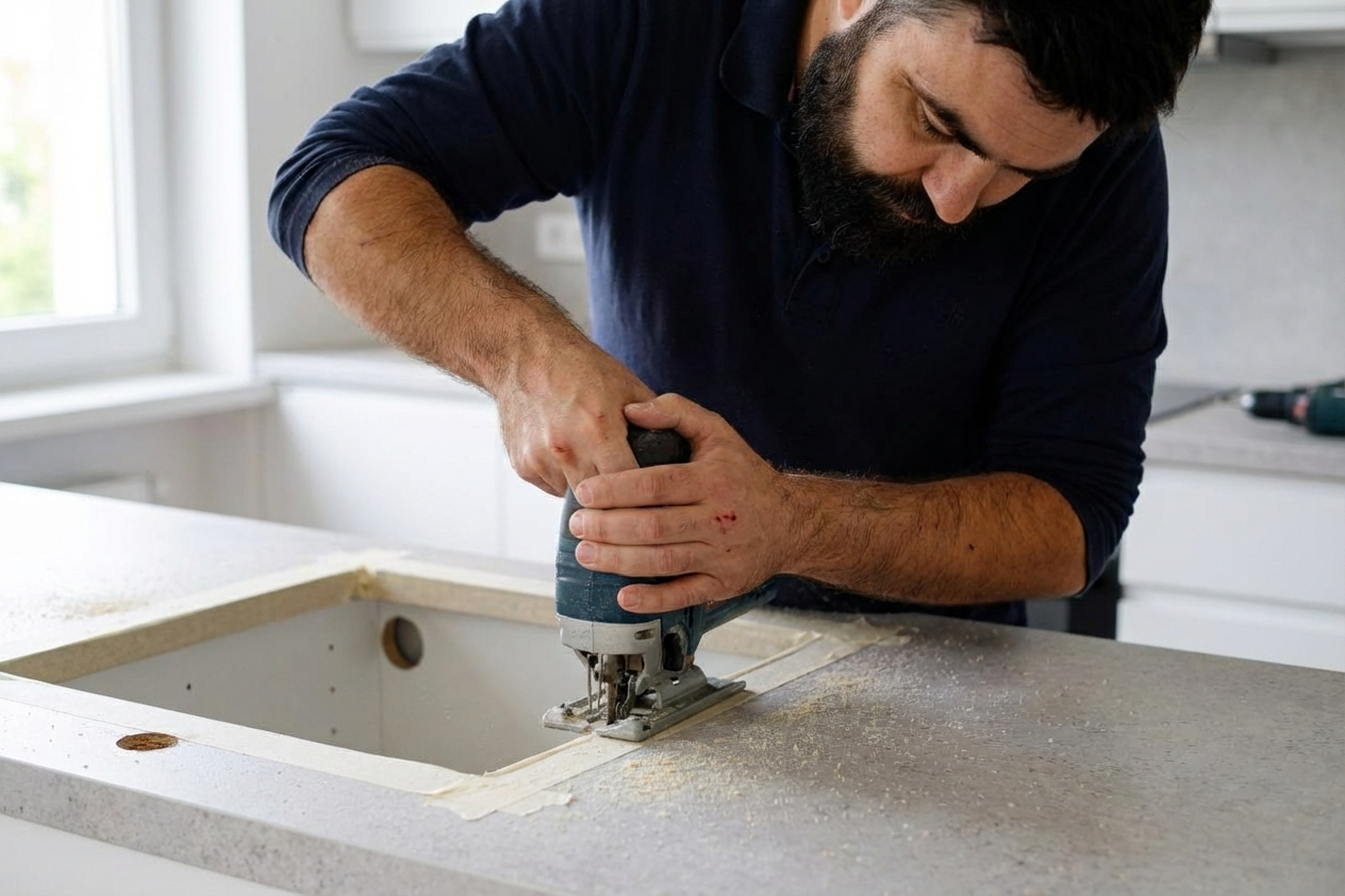 - Marking the cutout by eye without a template — the opening doesn’t match the appliance, and the countertop is ruined.