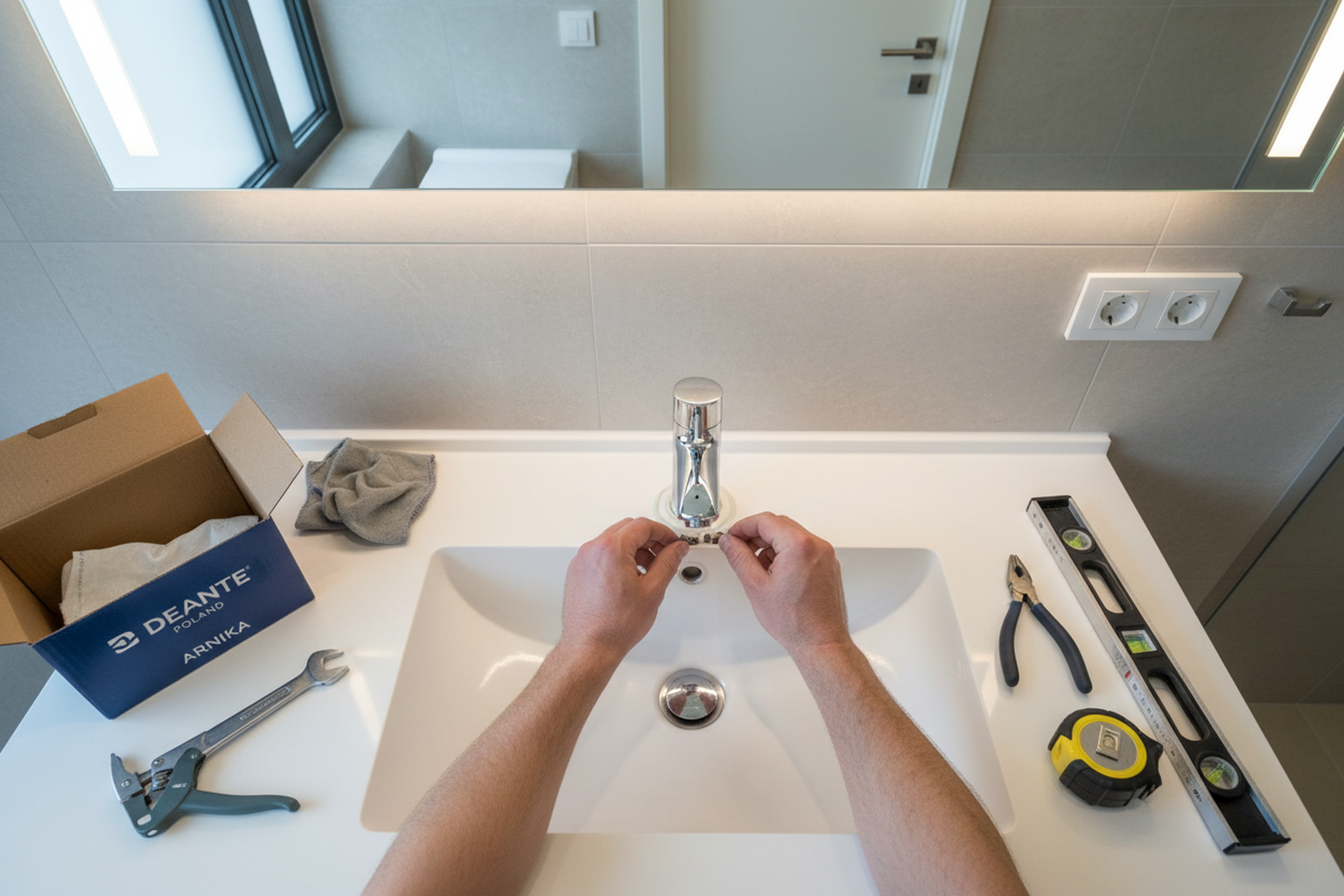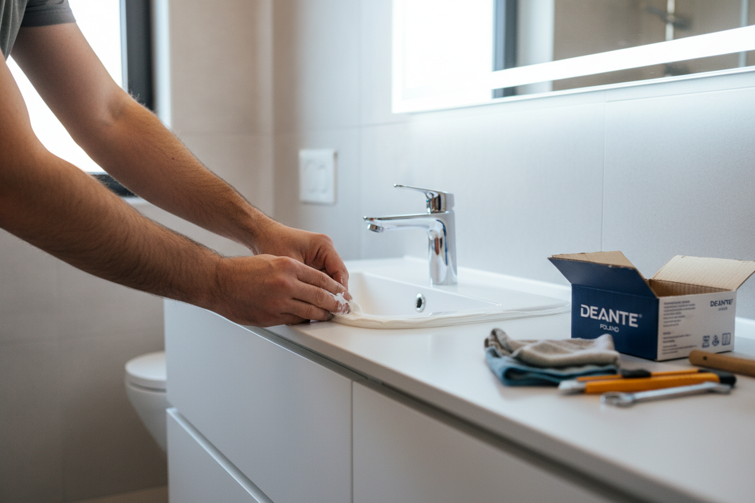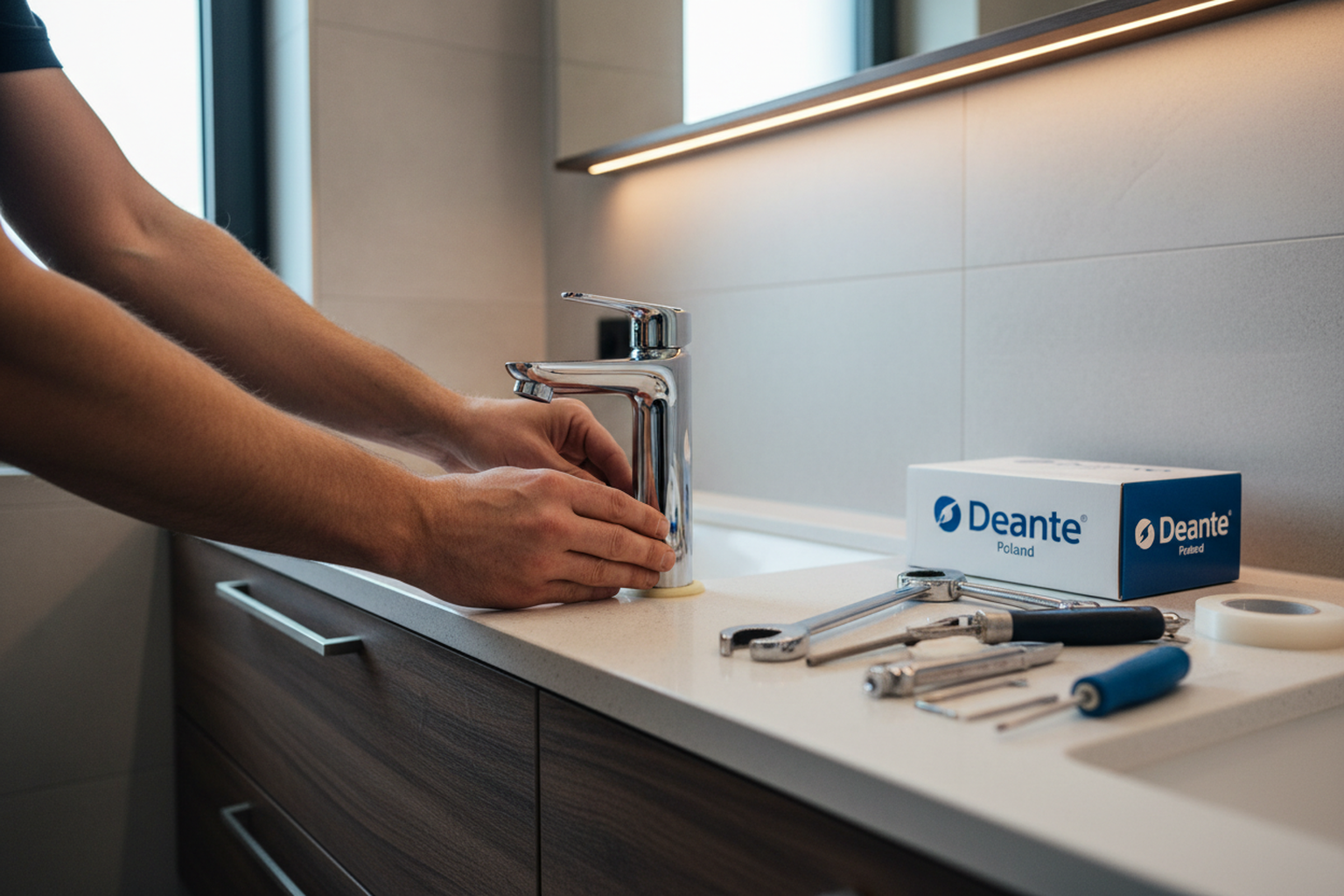 Replacing a Deante faucet is not wildly different from other mixer brands, but there are a few practical details. First, I always check the access under the sink before I promise a quick swap. In older flats in Wola or Ursynów, the cabinet setup can be worse than the tap itself: tight siphon placement, water filters, waste bins, dishwasher hoses — all that slows the job more than the mixer brand ever does.