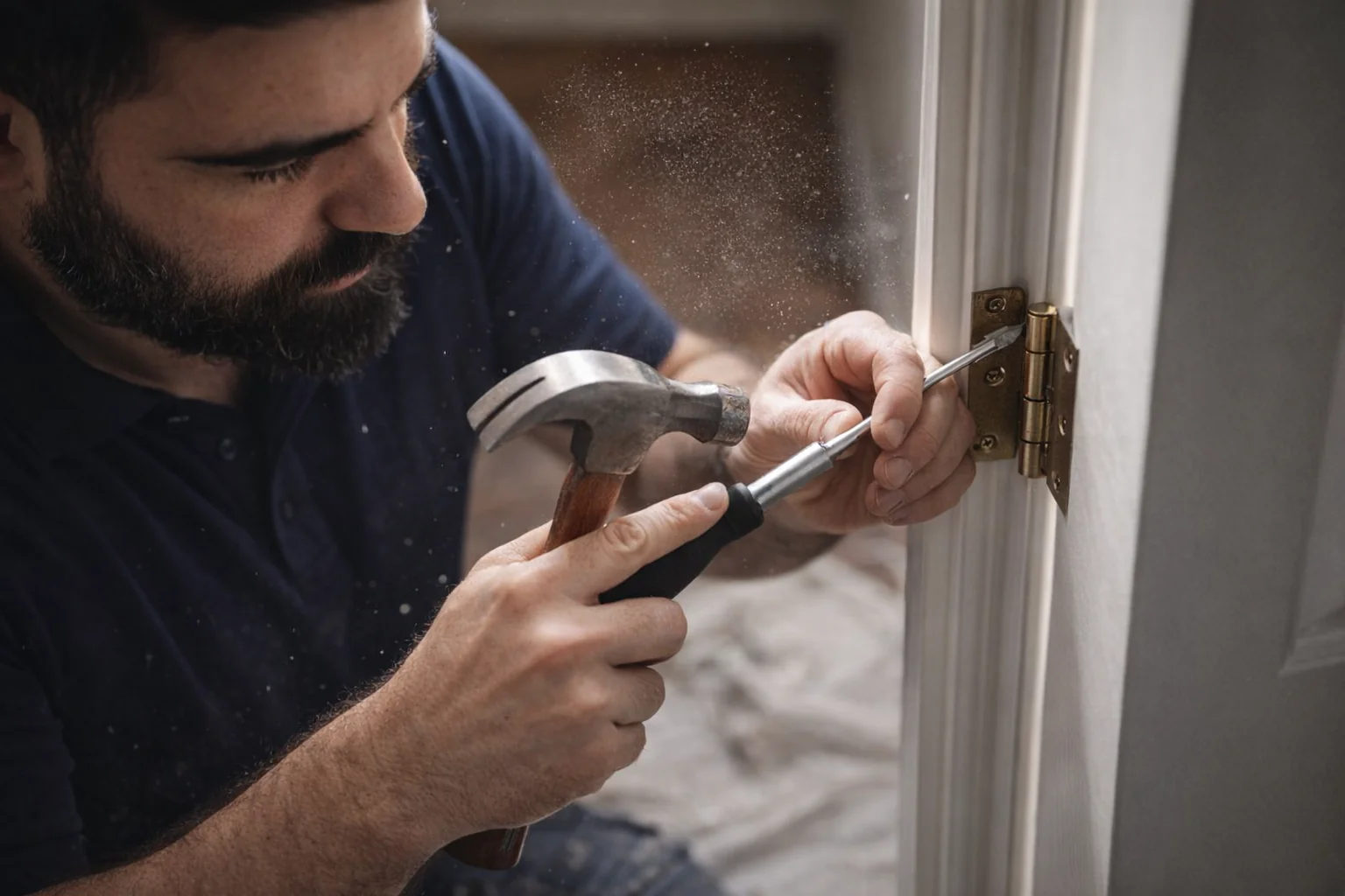 Door removal is not a matter of pulling harder. Each type of fixing needs a different approach, and a mistake at any stage leaves marks on the wall. Here is how the technician works: