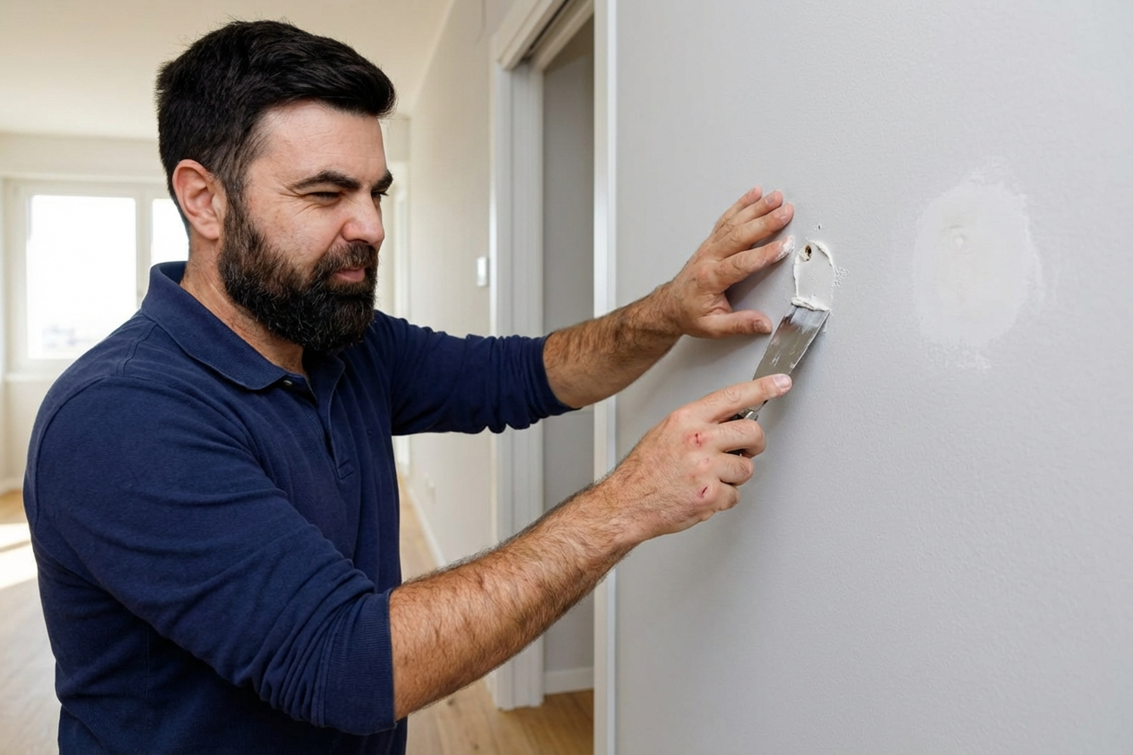 22.02.2026Rawlplug holes, corner cracks, chipped plaster where shelves used to be — sound familiar? Before painting, every one of these needs filling, otherwise each dent and scratch shows through on the fresh coat. We handle small and medium wall repairs across Warsaw — from a single hole to full room preparation. We often get calls from tenants in Wilanów and Bemowo moving out and needing walls back to their original state.