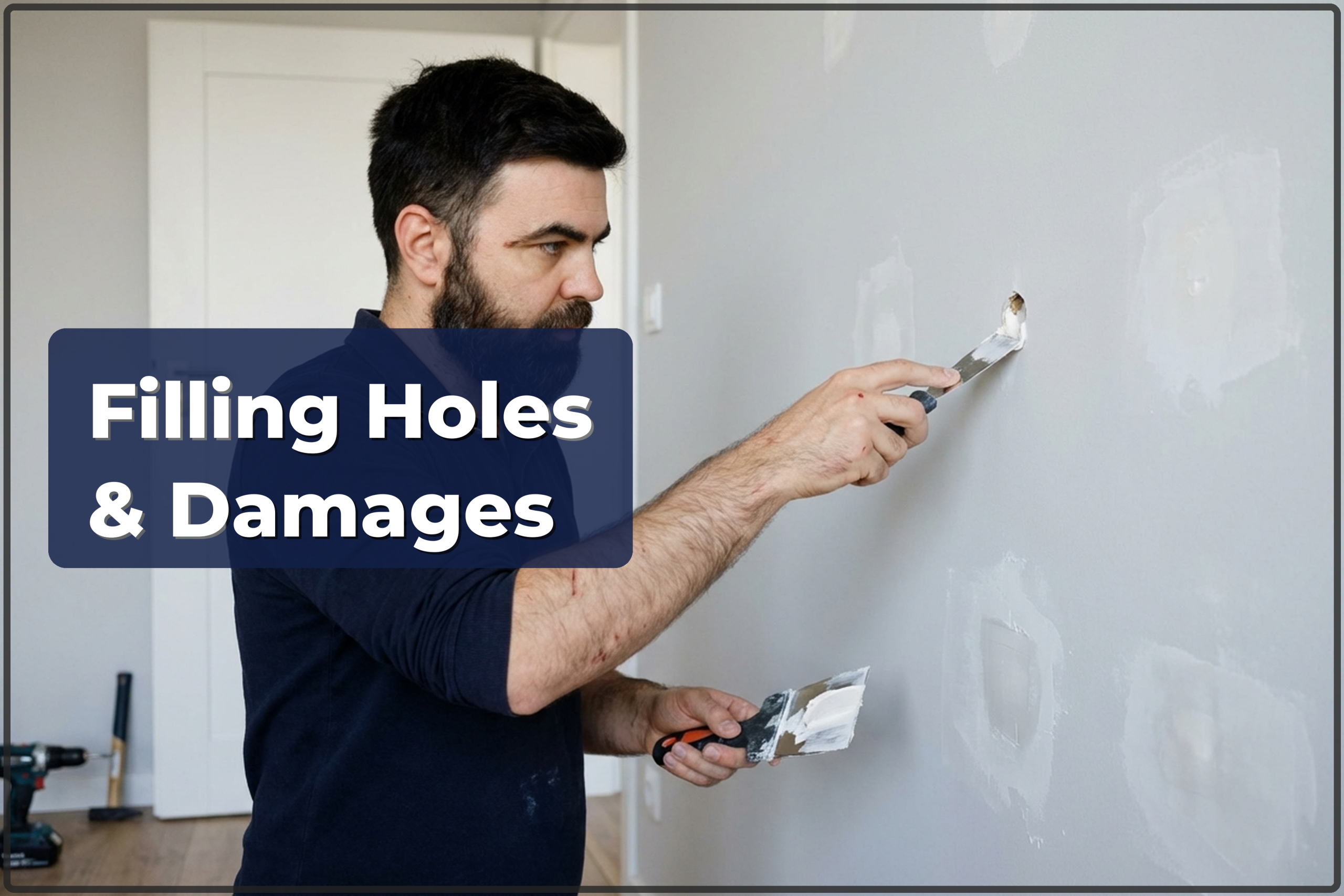 - Holes and cracks are cleaned of dust and primed.