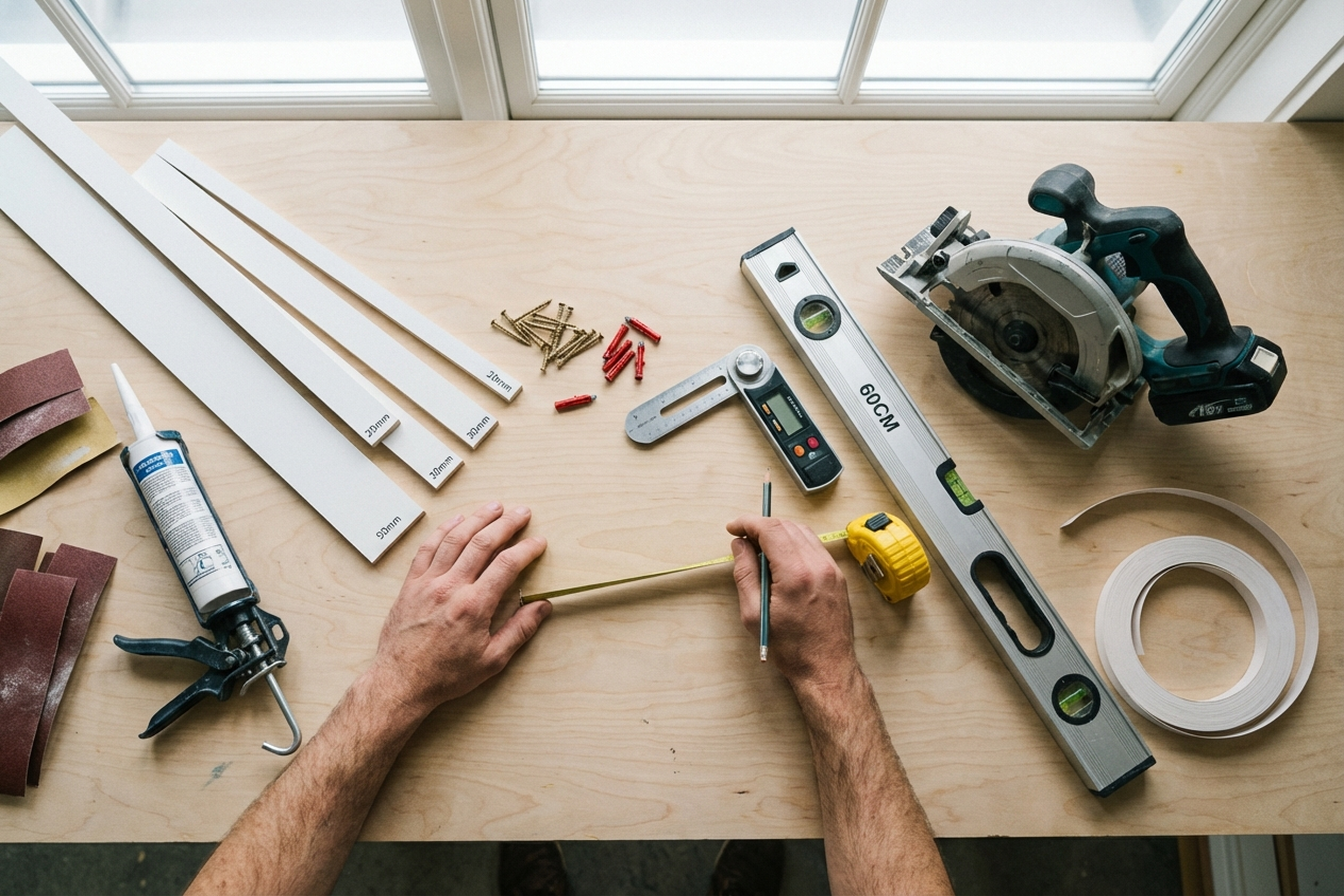 - We close gaps: side fillers, top strip, plinth at the bottom.