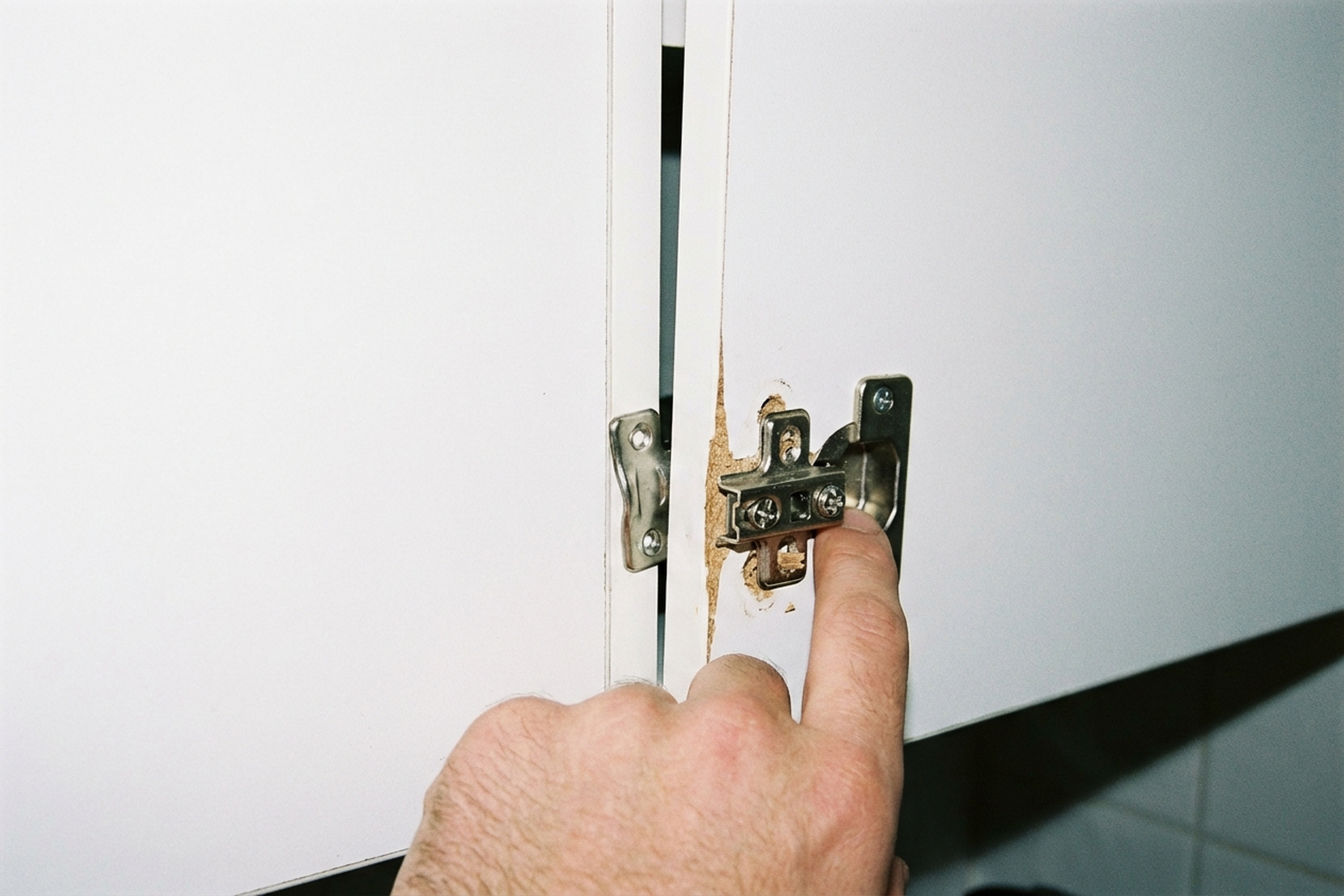 - Empty the affected cabinet — a loaded shelf makes the door sag more.