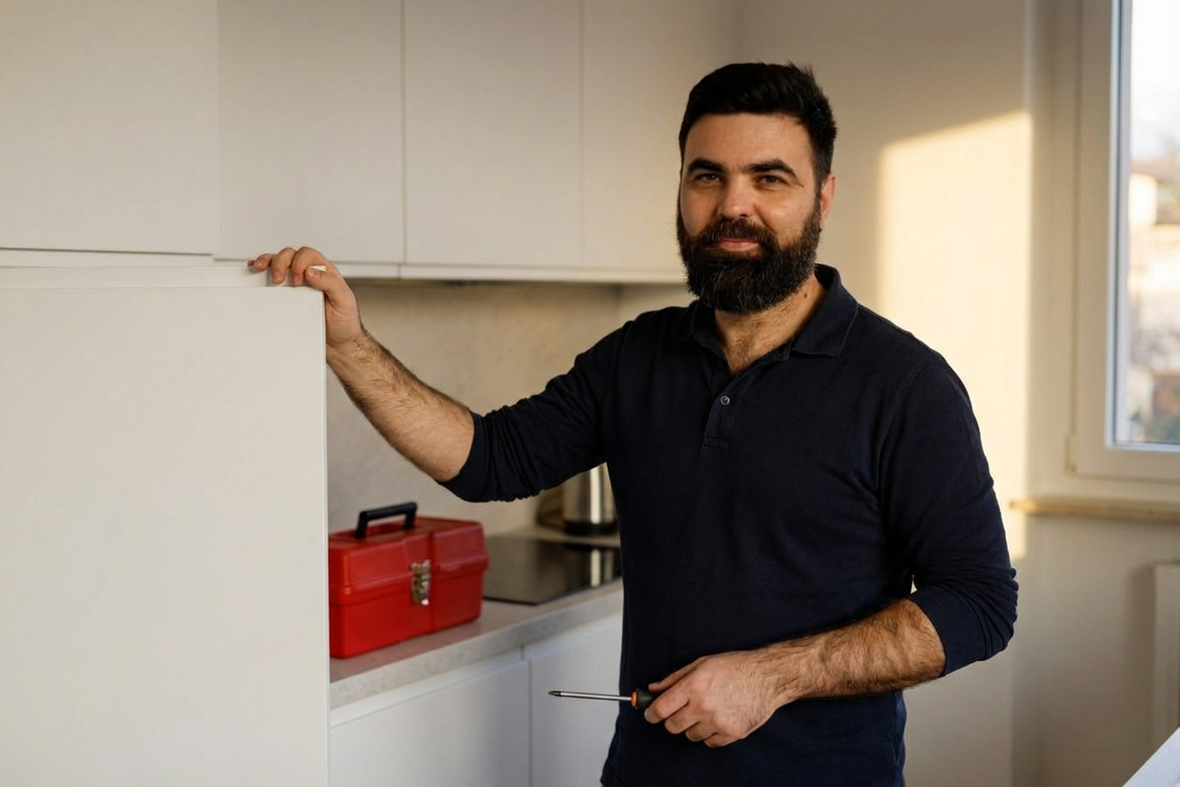 22.02.2026Cabinet door sagging, catching on the one next to it, or refusing to close all the way? Nine times out of ten the problem is not the hinge itself but its setting. Furniture hinges are built for thousands of open-close cycles, yet over time the adjustment screws work loose — especially when the cabinet is loaded with heavy items. We adjust hinges on any cabinet furniture across Warsaw: kitchen fronts, bedroom wardrobes, bathroom vanities, dressers. We arrive with a full set of screwdrivers and bits, align every door in three planes, and check the action.