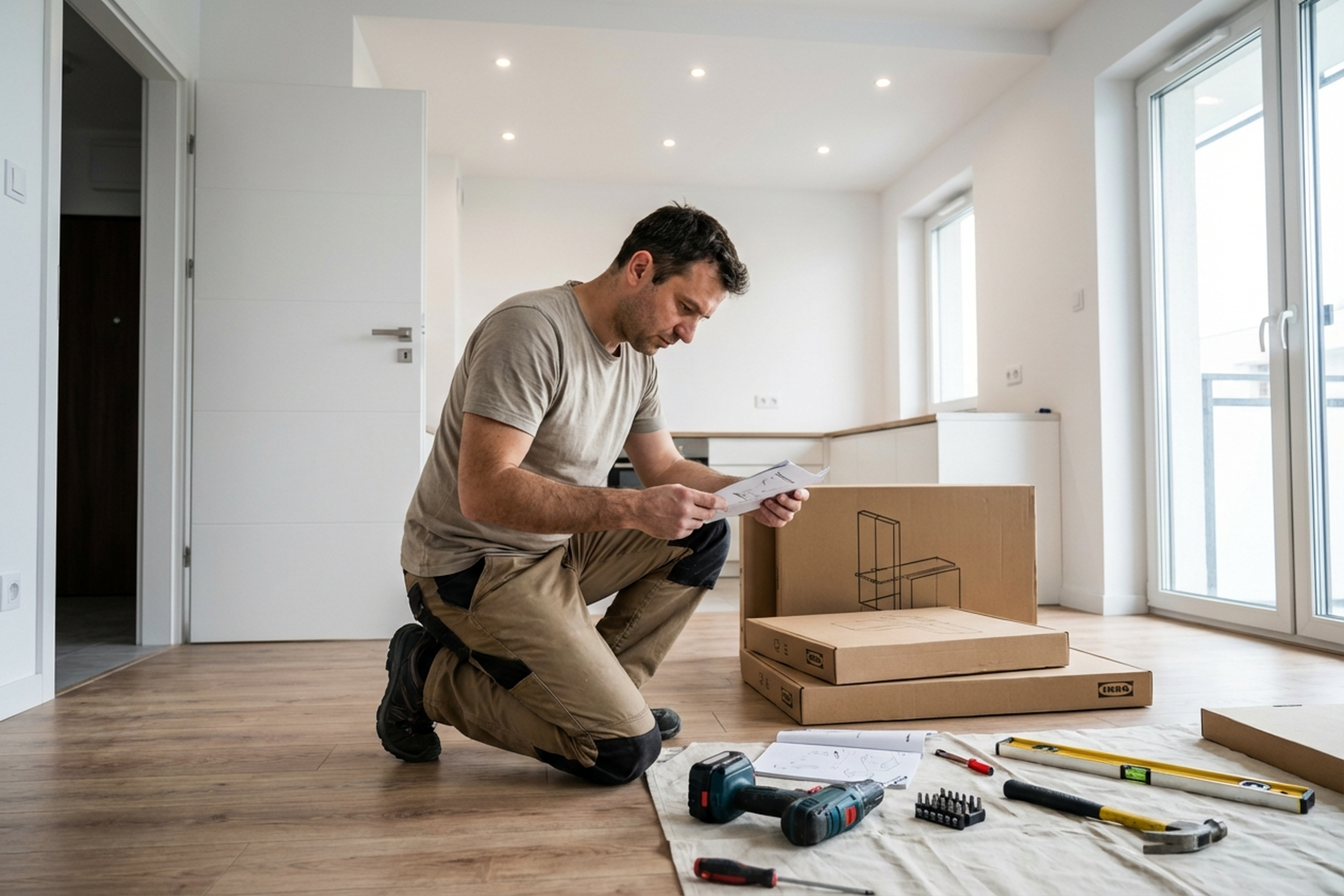 22.02.2026Bought a kitchen from IKEA, ordered units from Castorama, or had them custom-made by a carpenter — and now it all needs assembling and hanging? Complete kitchen installation is more than just screwing on doors. It involves levelling cabinets, cutting the sink opening, fitting the worktop, and installing plinths and end caps. We work across all of Warsaw: from Ursynow to Targowek, arriving with a full tool kit.