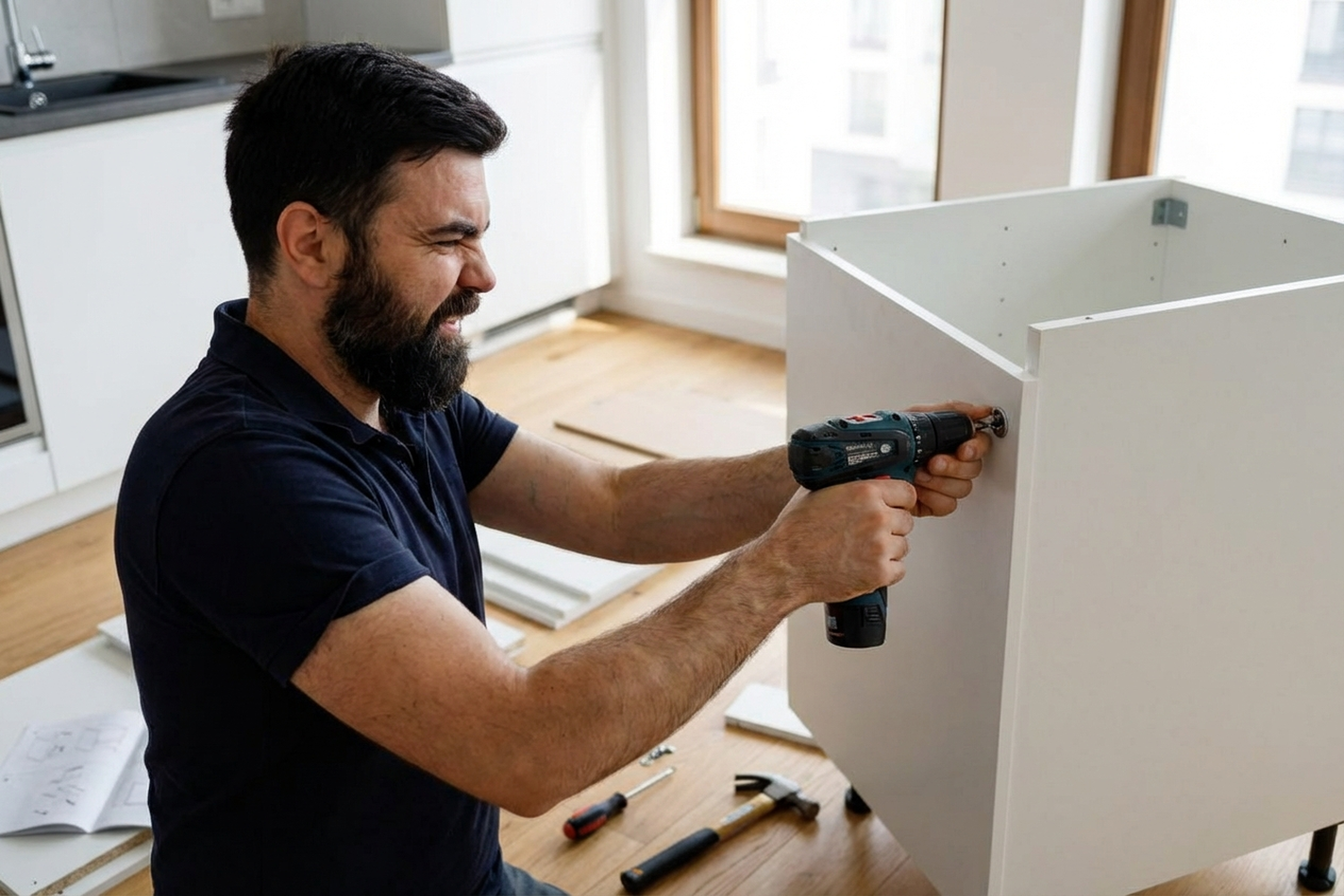 - Trying to assemble an IKEA kitchen by themselves following the manual, mixing up left and right hinges — then it all needs redoing.