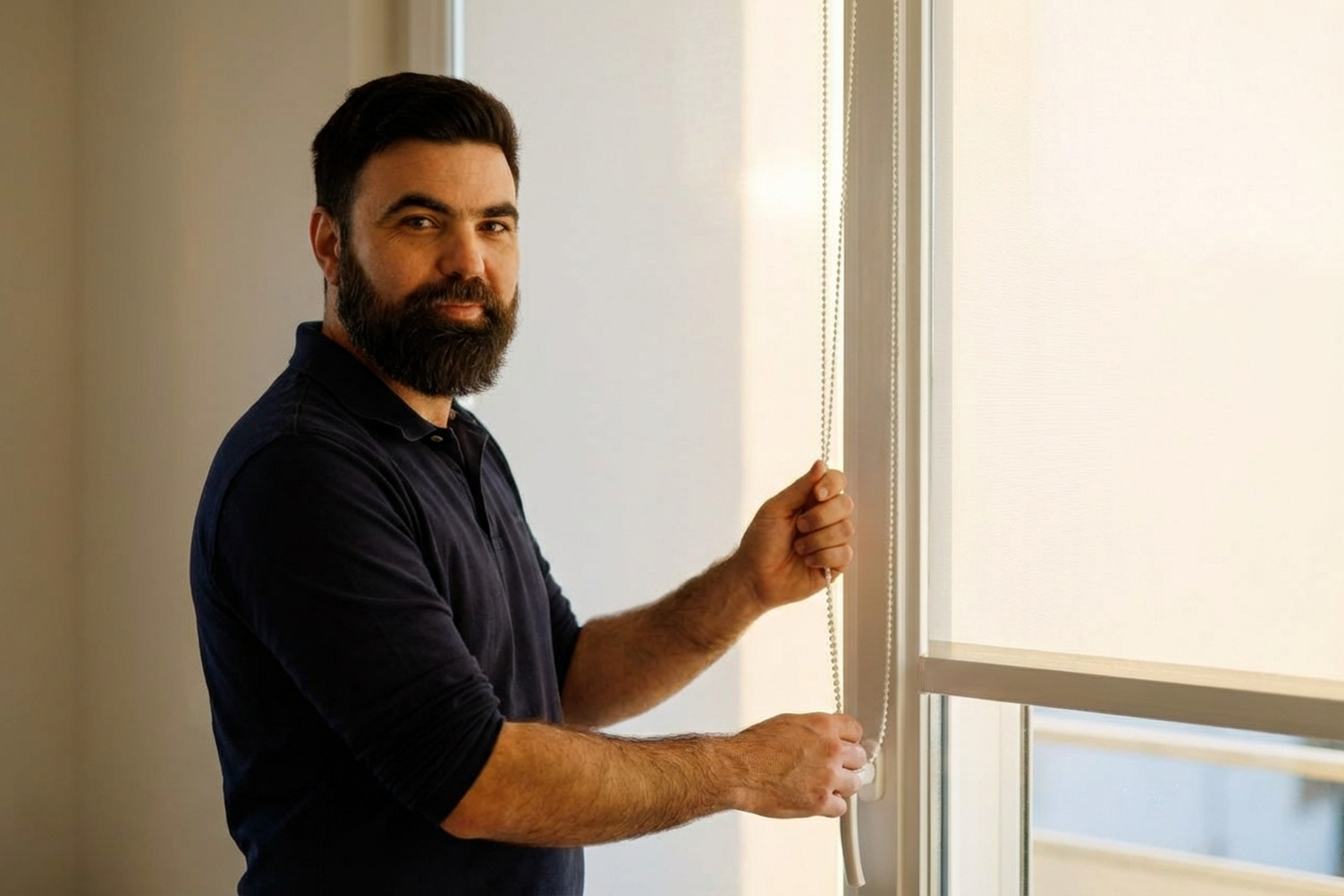 - Adjusting the mechanism. We set the spring tension (if spring-operated), the control-chain length and the lower-limit stops. For motorised blinds we test the electric drive and limit switches.