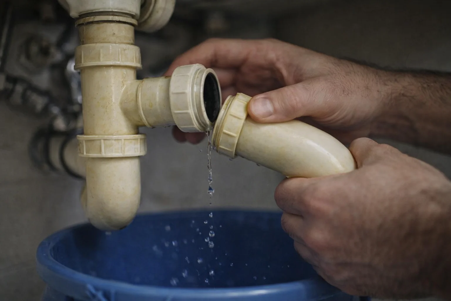 - Using a wrench on plastic nuts — the thread splits and the trap leaks immediately or within a week.