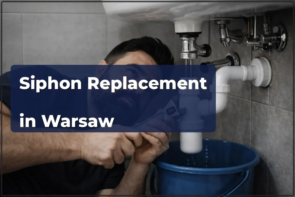 24.02.2026The siphon — or trap — is the curved fitting under your sink, bathtub or shower that holds a plug of water to block sewer gases from entering the room. As long as it works, nobody gives it a thought. Trouble starts when the plastic cracks with age, rubber seals dry out, or a blockage refuses to clear no matter what you pour down the drain. Then a puddle appears under the basin and the bathroom starts smelling like a sewer. In older buildings around Srodmiescie and Wola we regularly find traps that have been in place for 15–20 years — they crumble the moment you try to unscrew them.