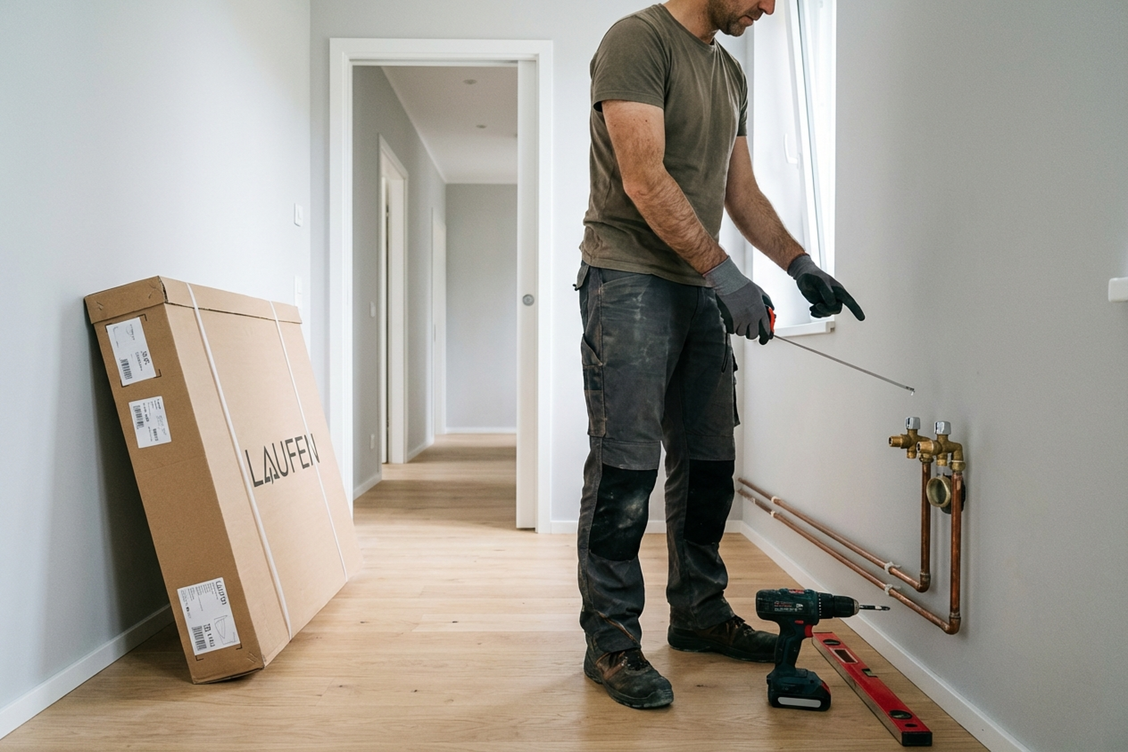 - Wall marking (for wall-hung models): we mark fixing points, drill and insert anchors. For freestanding units we adjust the feet with a spirit level.
