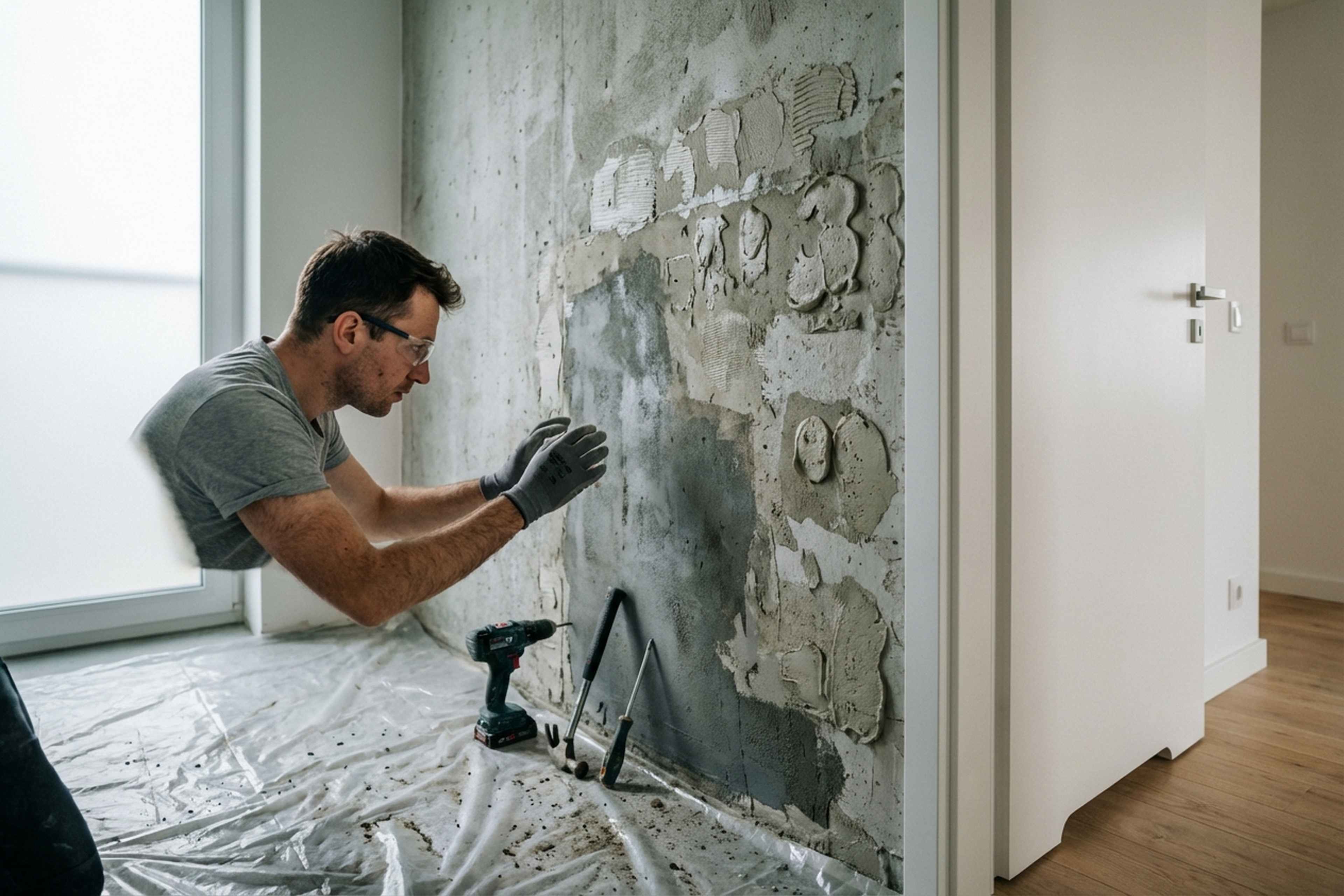 Wall levelling after tile removal in Warsaw — repairing the substrate for a new finish