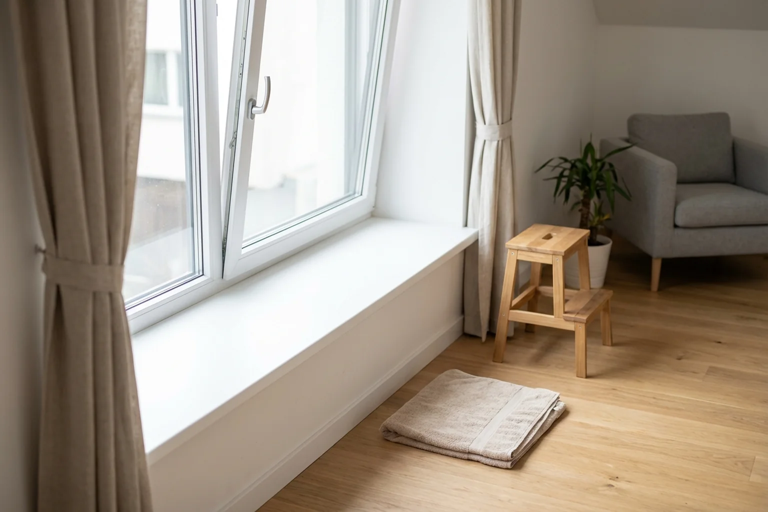 We switched the cams to winter mode and tightened the lower hinges on two sashes — they had sagged slightly and were scraping the frame. We lubricated all mechanisms with silicone spray. On one window a strike plate had shifted — we tightened and secured it. After adjustment we tested the pressure with paper — the sheet held firmly around the entire perimeter. The job took about an hour for three windows. The client called back a week later and said the draughts had disappeared completely and the room was noticeably warmer. The takeaway: sometimes you do not need to replace windows to solve a cold-air problem — a proper adjustment is enough.