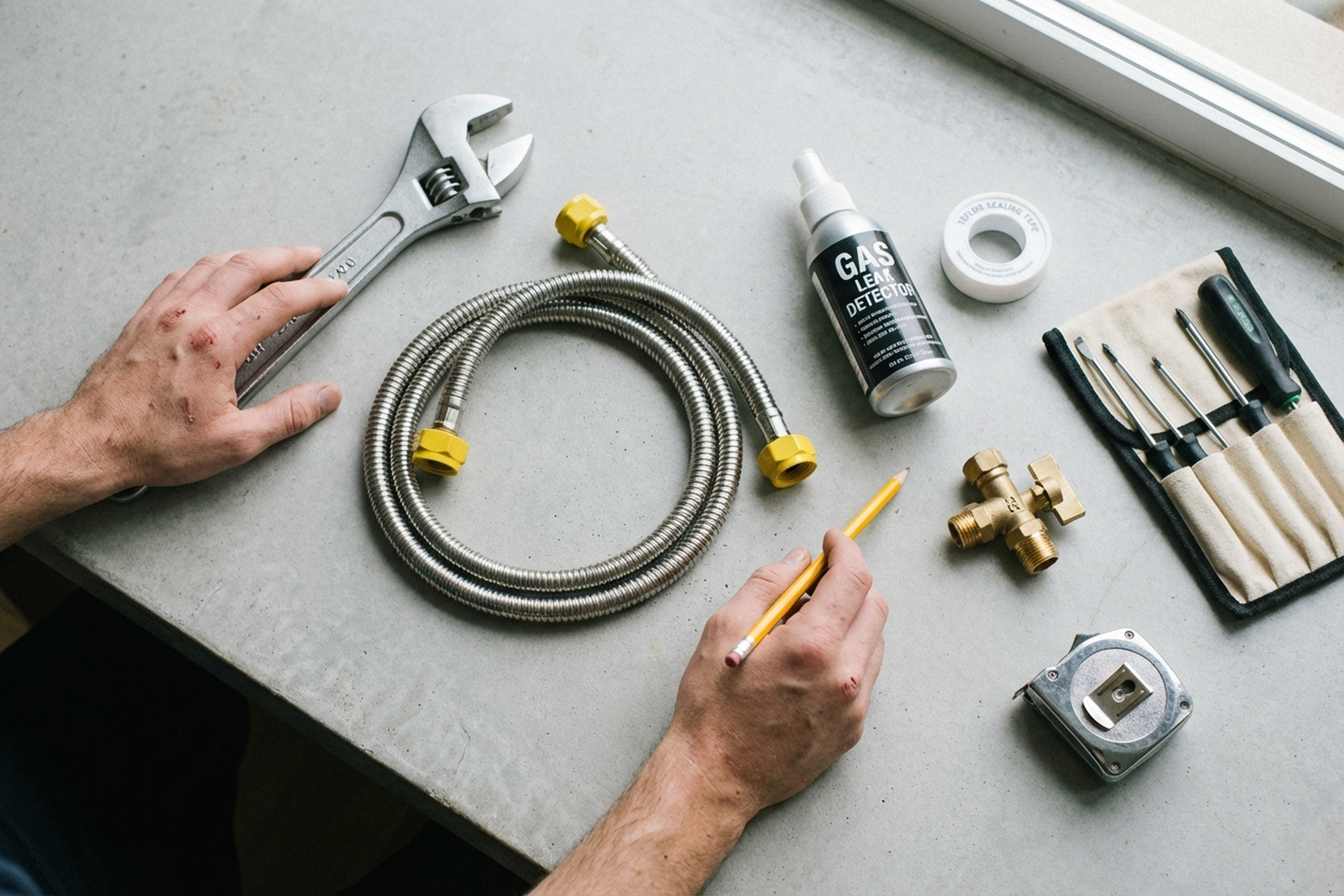 - On site, the technician checks the gas valve and pipe condition, measures the countertop cutout.