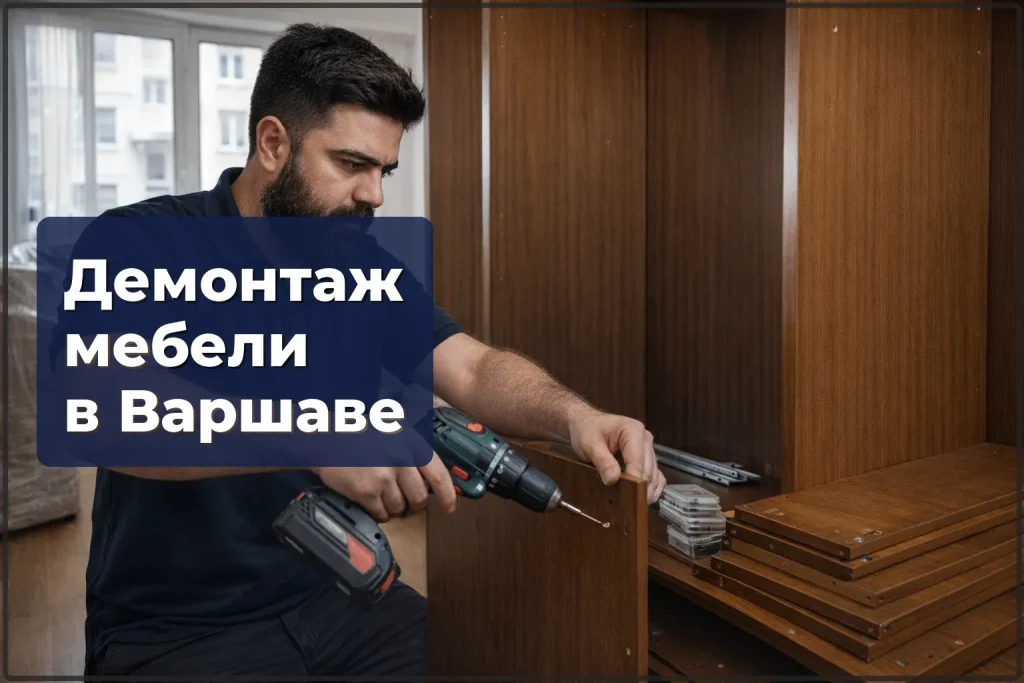 Демонтаж мебели выполняют мастера с практическим опытом сборки и разборки корпусной мебели. Работаем со всеми типами: IKEA, встроенные шкафы, кухни, стенки. Выезжаем по всей Варшаве и пригородам. Для записи — позвоните или напишите, ответим в течение часа.