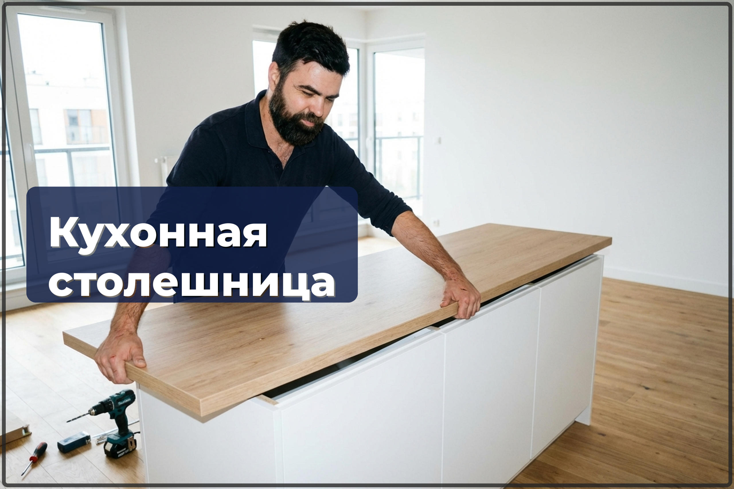 Клиент на Воле заказал угловую кухню из IKEA и купил столешницу из ламината 3 метра + 1,6 метра. Проблема — стены в старом доме были неровные, угол не 90 градусов, а около 87. Мастер подрезал обе части по контуру стены с помощью циркулярки и довёл лобзиком. Стык выполнил через еврозапил с герметизацией и стяжкой снизу. Вырезал отверстия под мойку и варочную панель, обработал торцы алюминиевой кромкой. Установил пристенный плинтус. Работа заняла около 4 часов. Через две недели клиент прислал фото — стыков не видно, плинтус прилегает плотно, никаких щелей. Вывод: замеры по месту решают — стандартные размеры из каталога редко совпадают с реальностью.