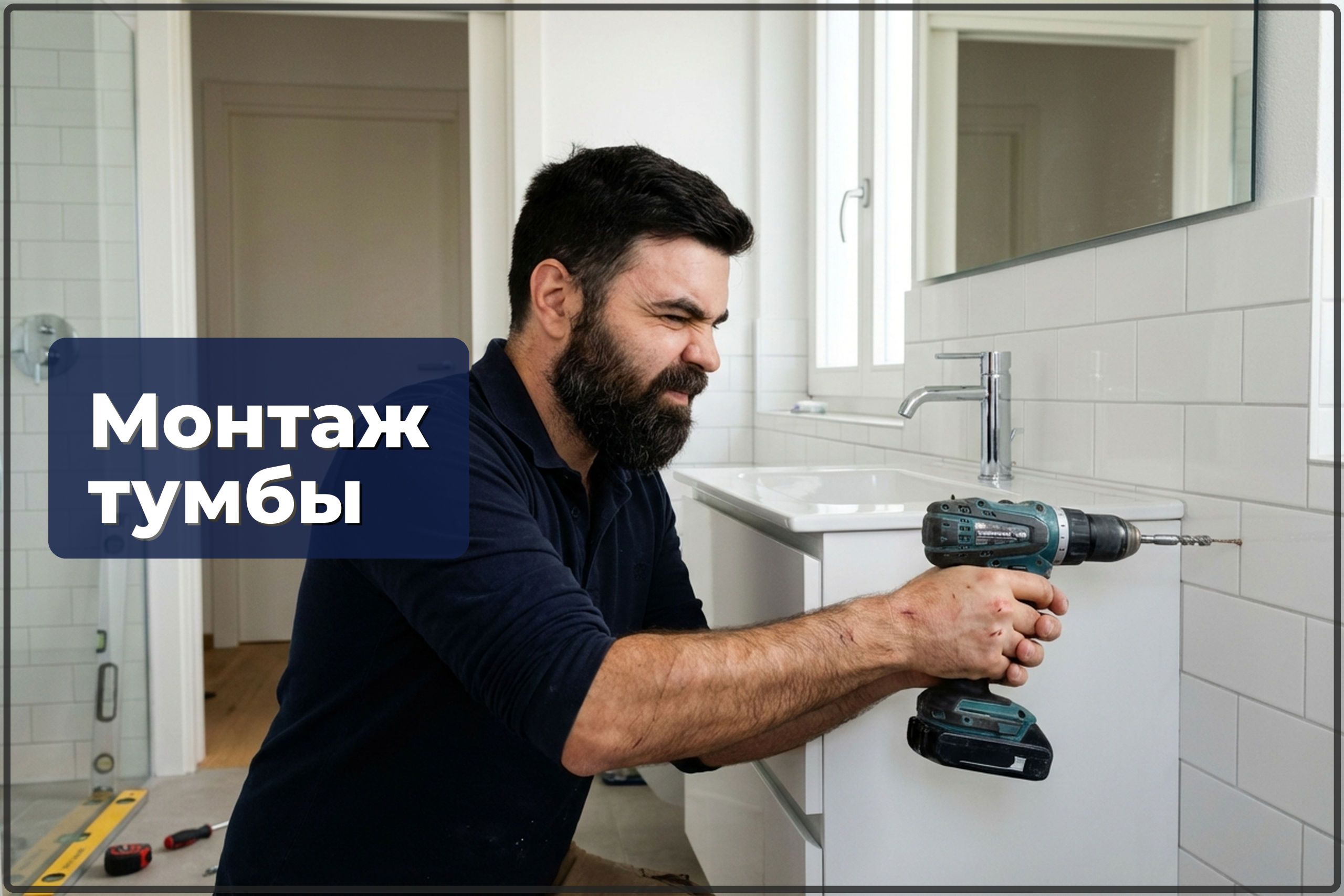 Тумба с умывальником — это не просто мебель, а узел, где сходятся сантехника, крепёж и отделка. Собрать корпус — полдела. Нужно ещё подключить сифон, подводку, выставить тумбу по уровню и загерметизировать стыки, чтобы вода не затекала за мебель. На Мокотове в новых комплексах и на Воле в старом фонде — ситуация одна: купили тумбу из IKEA или Leroy Merlin, а установить некому. Вот этим и занимаемся.