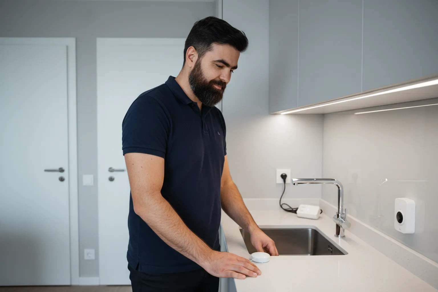 Вернулись из отпуска, а в квартире озеро — шланг стиральной машины лопнул ночью. Или приходите домой в тёмный подъезд, а свет не включается, пока не нащупаете выключатель. Обе проблемы решаются за пару часов: датчик протечки под раковиной и датчик движения на входе. Устанавливаем оба типа по всей Варшаве — от Воли до Урсынова. Работа простая, но требует правильного размещения и настройки, иначе датчик будет молчать, когда нужен, или орать без причины.