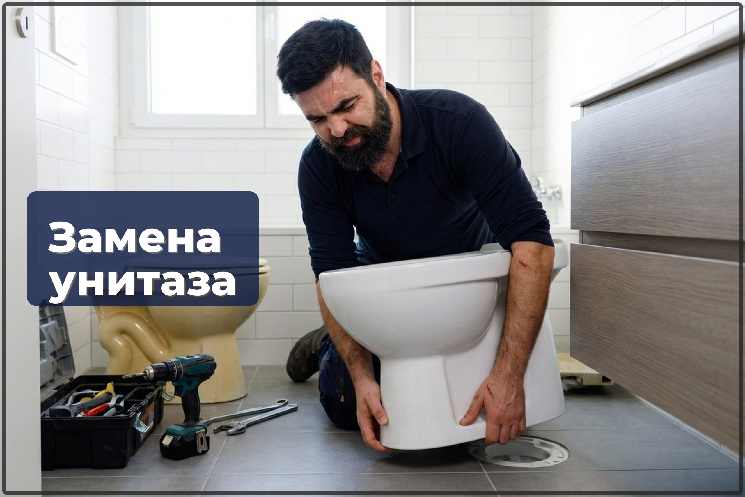 Цена зависит от сложности демонтажа старого унитаза, состояния канализационного выпуска и типа нового оборудования. Если чугунная труба заросла и требует переходника — это дополнительная работа. Актуальные расценки на все сантехнические услуги — в таблице ниже. Крепёж и герметик входят в стоимость, сам унитаз и гибкую подводку покупает заказчик.