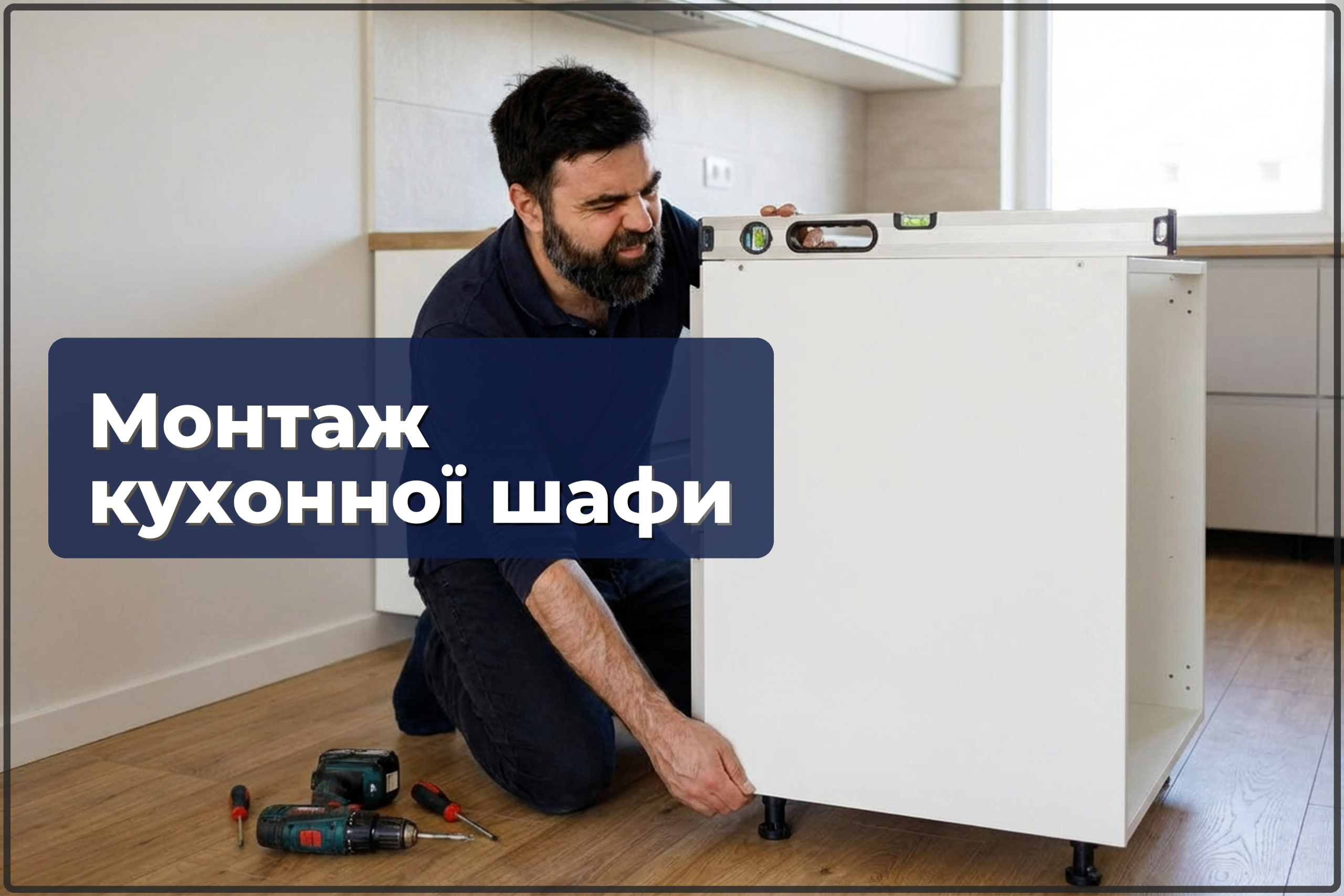 Встановлення цілої кухні — це комплекс: вирівнювання, підгонка всіх модулів, стільниця, підключення техніки. Одна шафа — точкове завдання: поставити, вирівняти, закріпити, з’єднати із сусідніми.