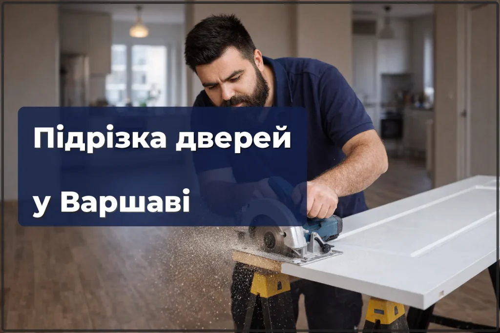 Підрізкою дверей займаються майстри з досвідом у столярній справі та оздобленні — ті, хто щодня працює з дверима різних конструкцій і матеріалів. Приїжджаємо з повним набором інструменту: занурювальна пилка з напрямною, електрорубанок, шліфмашинка, крайкові матеріали. Працюємо по всій Варшаві та передмістях. Гарантуємо рівний різ без сколів і правильну обробку торця. Якщо після підрізки двері чіпляють підлогу або торець оброблений неякісно — виправимо за свій рахунок. Зателефонуйте або напишіть — зазвичай відповідаємо протягом години та приїжджаємо в зручний для вас час.