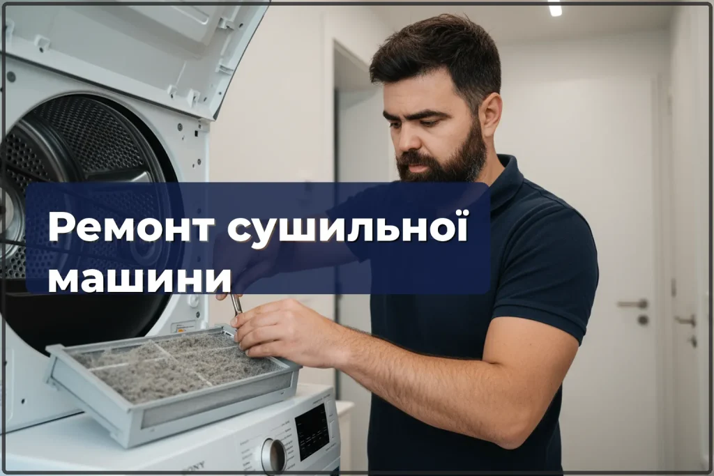 Актуальні ціни — в таблиці нижче. Вартість залежить від бренду, типу сушарки (конденсаційна, з тепловим насосом, вентиляційна) та характеру поломки. Діагностика входить у вартість ремонту. Запчастини — окремо.