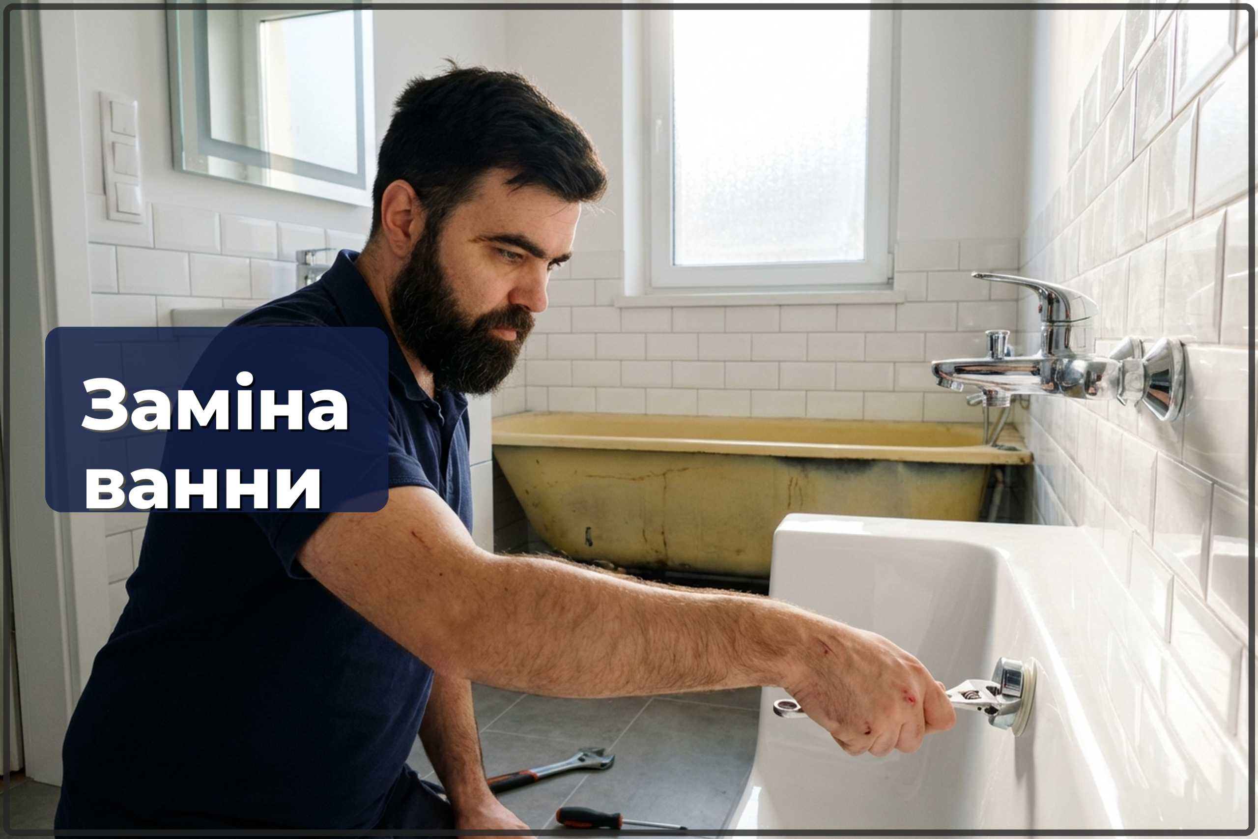 Стандартна заміна — 3–5 годин. Якщо потрібно міняти труби або вирівнювати стіни, може піти цілий робочий день.