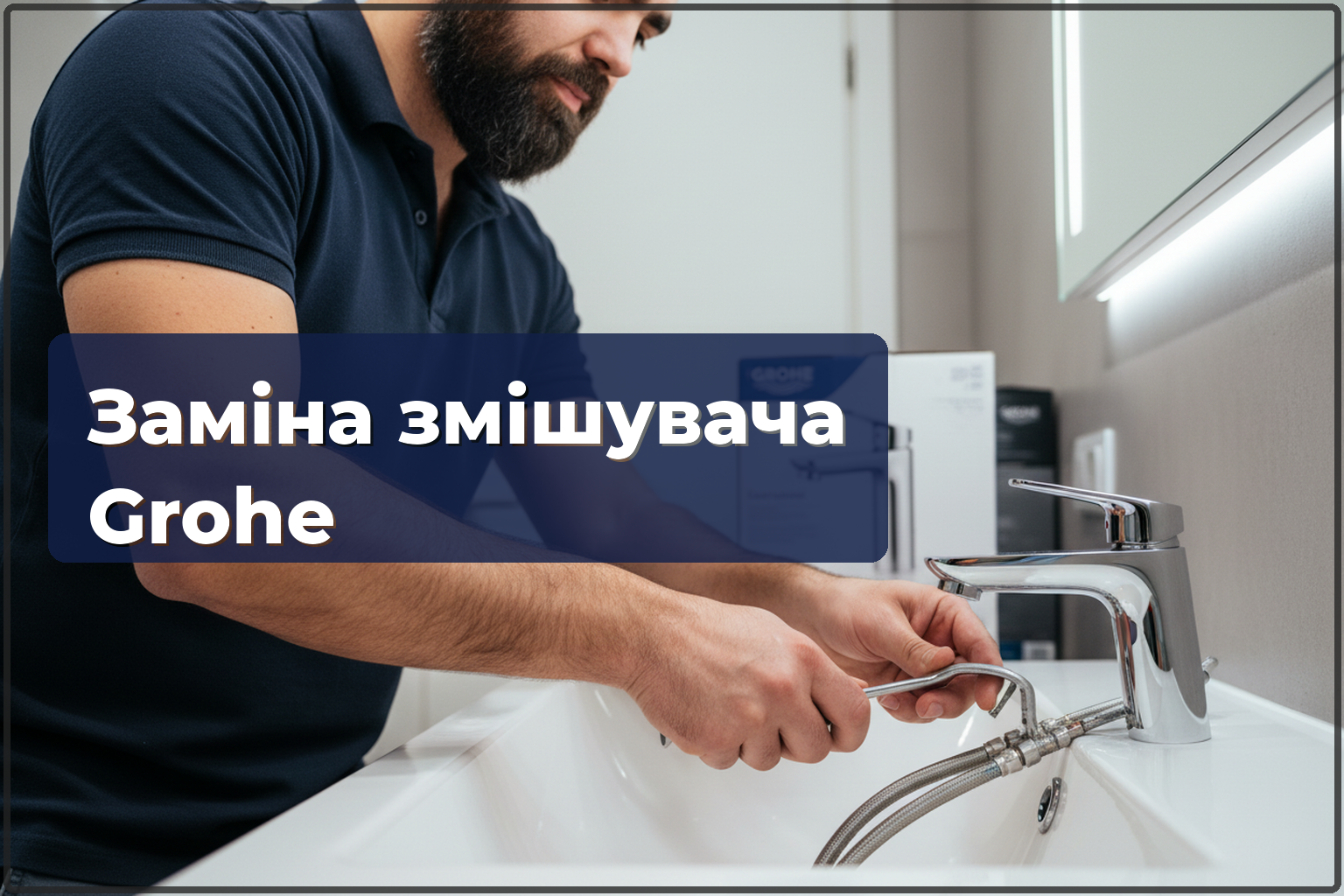 Вартість самої заміни теж залежить не тільки від бренду. Має значення, наскільки зручно дістатися до кріплення, чи не закисли гайки, чи треба міняти підводки, чи є додаткові роботи з очищення місця посадки. У Grohe часто сам монтаж простий, але демонтаж старого змішувача може забрати більше часу, ніж очікує клієнт.