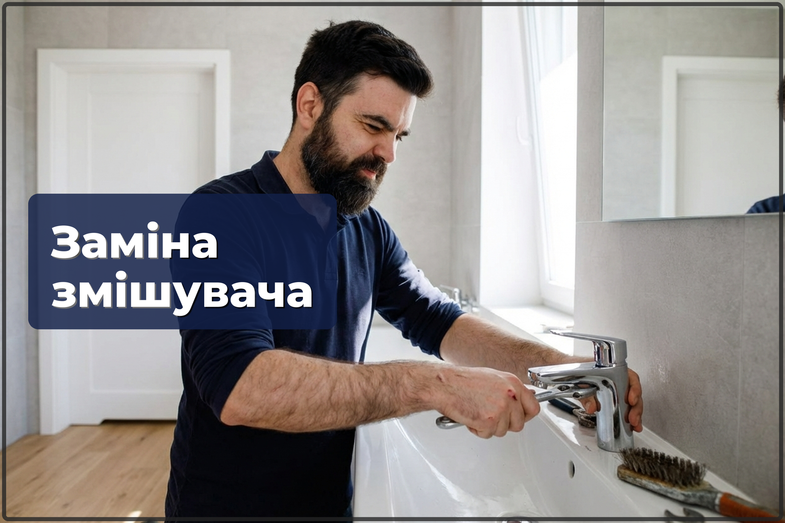 Змішувач на умивальнику тече, важко перемикається або виглядає так, ніби пережив три ремонти — знайома ситуація. У квартирах на Бемові та Таргувку це одне з найчастіших звернень: кран капає, основа хитається, а під раковиною вже калюжа. Замінити змішувач повністю — простіше й надійніше, ніж ремонтувати старий. Робота займає годину-півтори, якщо підведення в порядку й новий кран куплений заздалегідь.