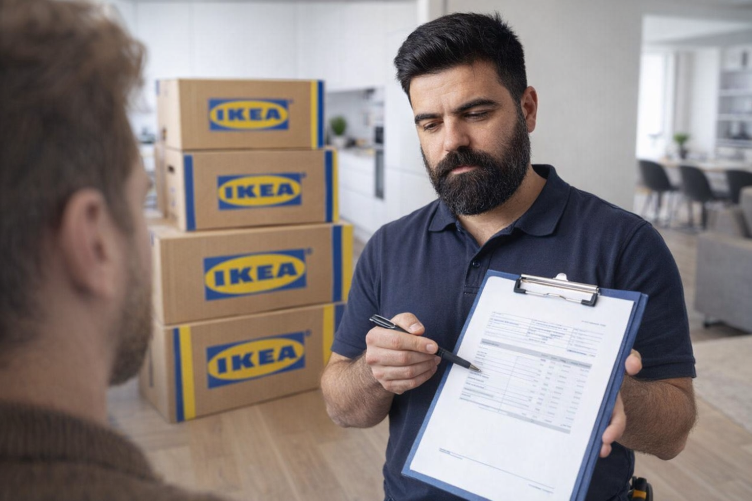 - Ви надсилаєте список меблів (назва, артикул або фото) — майстер оцінює обсяг і називає орієнтовний час та вартість.